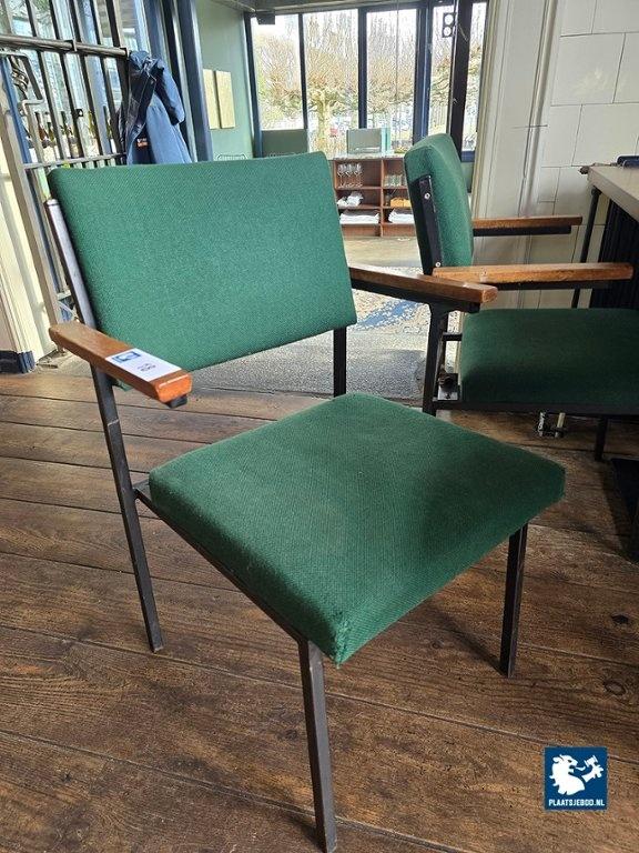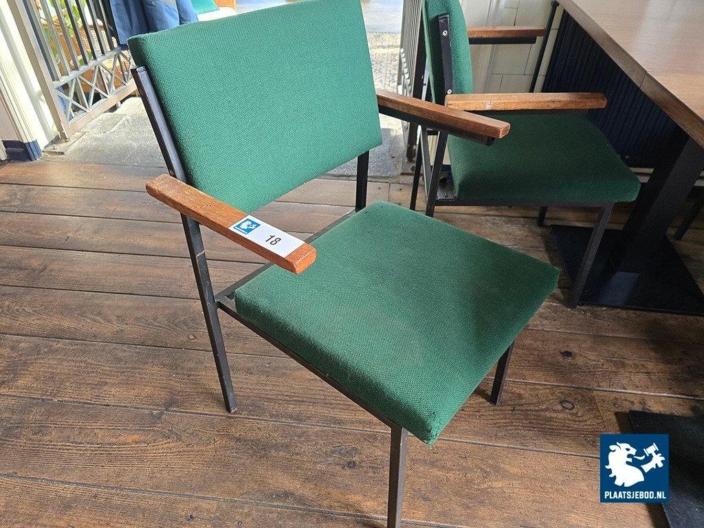 Kavel 318-018: 4 x Gestoffeerde stoel met houten armleggers