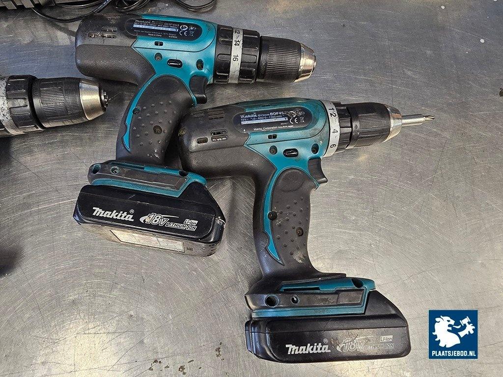 Kavel 241-058: 4 x Makita accu boormachine met lader en 3 x accu