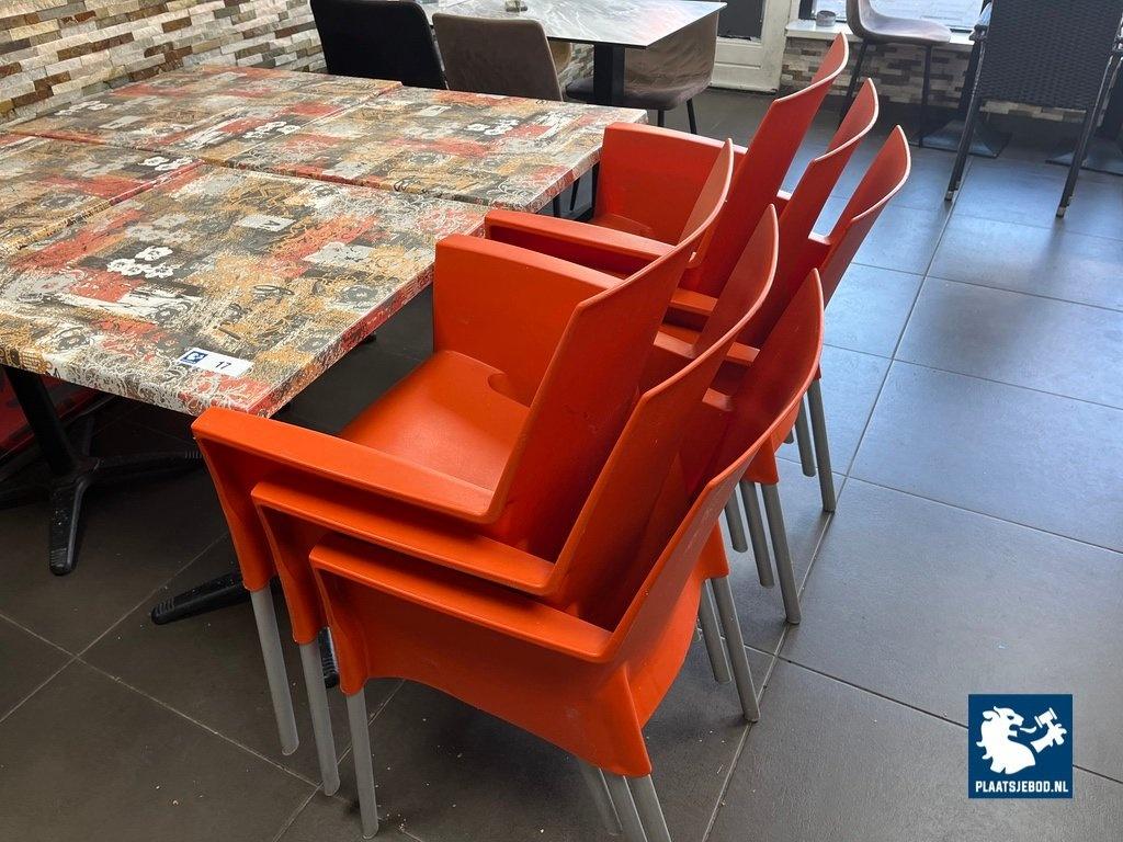 Kavel 283-017: 4 x Terrastafel, met stalen onderstel, inclusief 6 terrassstoelen voor gebruik buiten