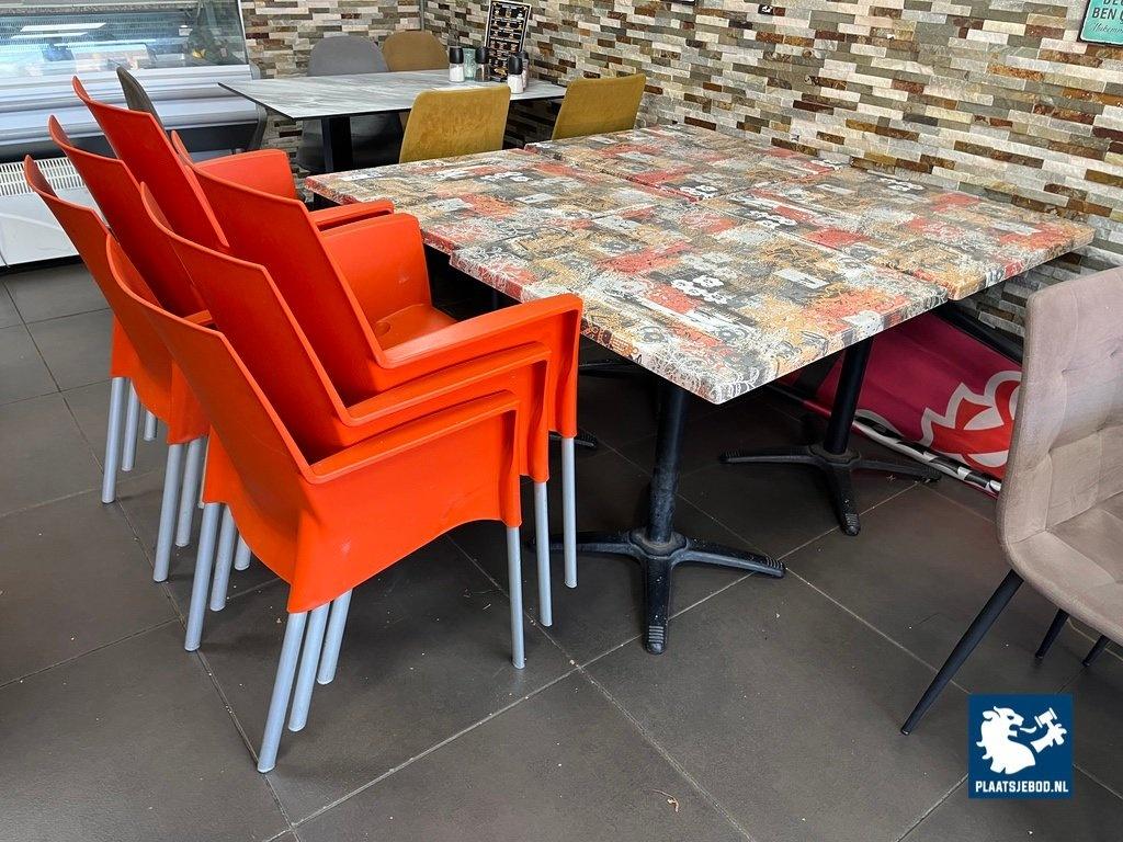 4 x Terrastafel, ca. 70x70 cm met stalen onderstel, inclusief 6 terrassstoelen voor gebruik buiten