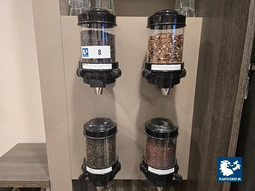 4 x Thee dispenser met divers toebehoren en decoratie