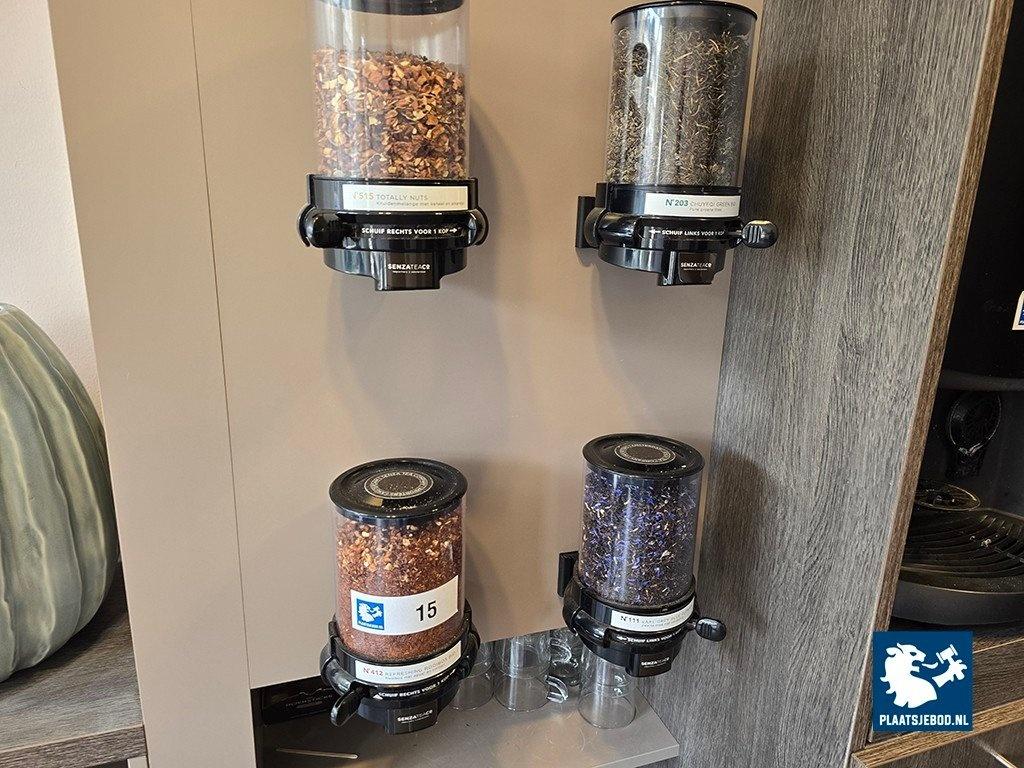 4 x Thee dispenser met divers toebehoren en decoratie