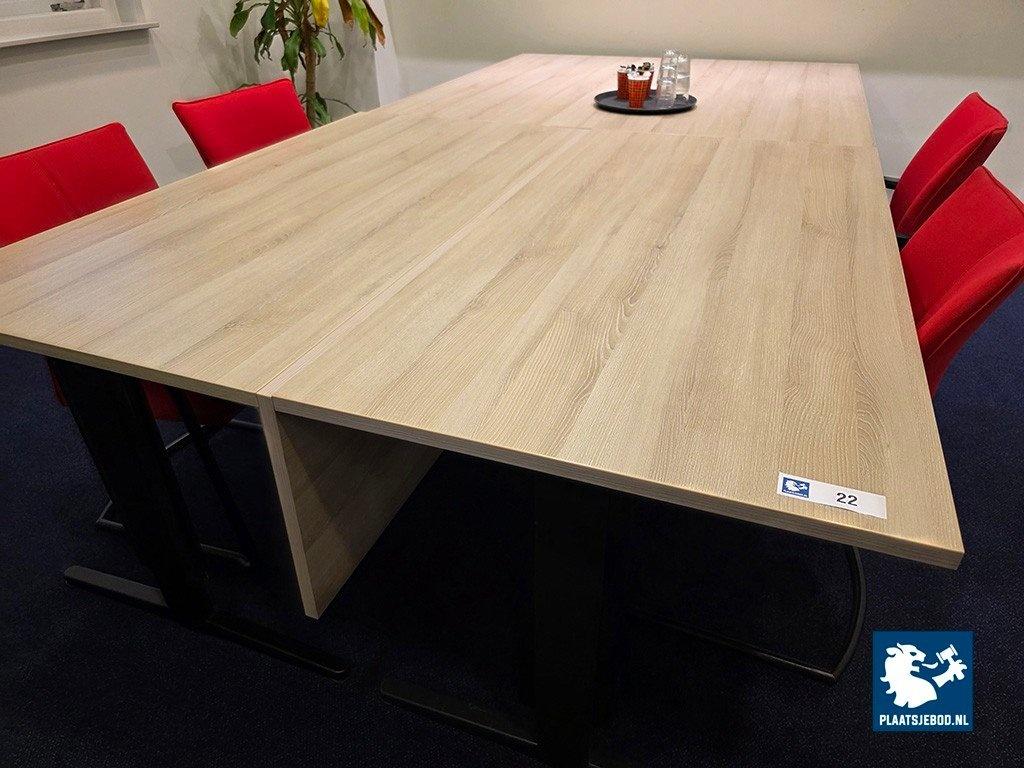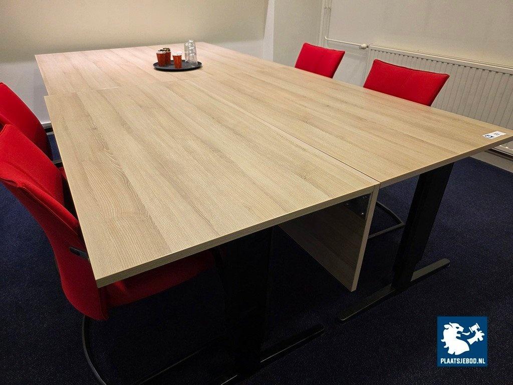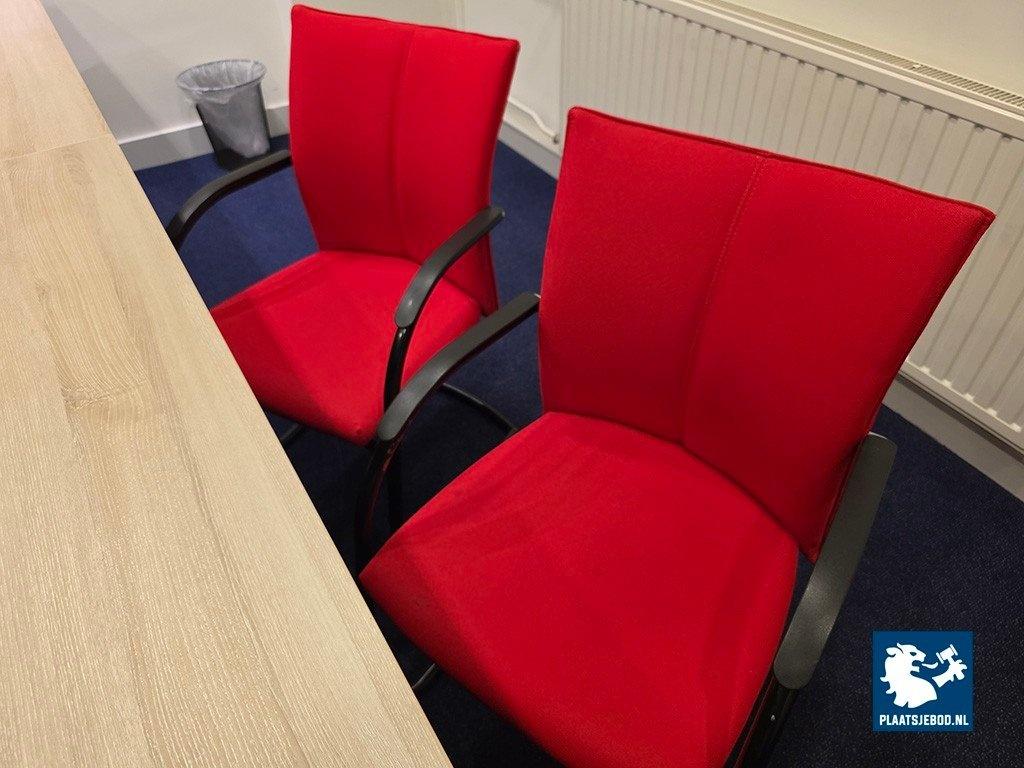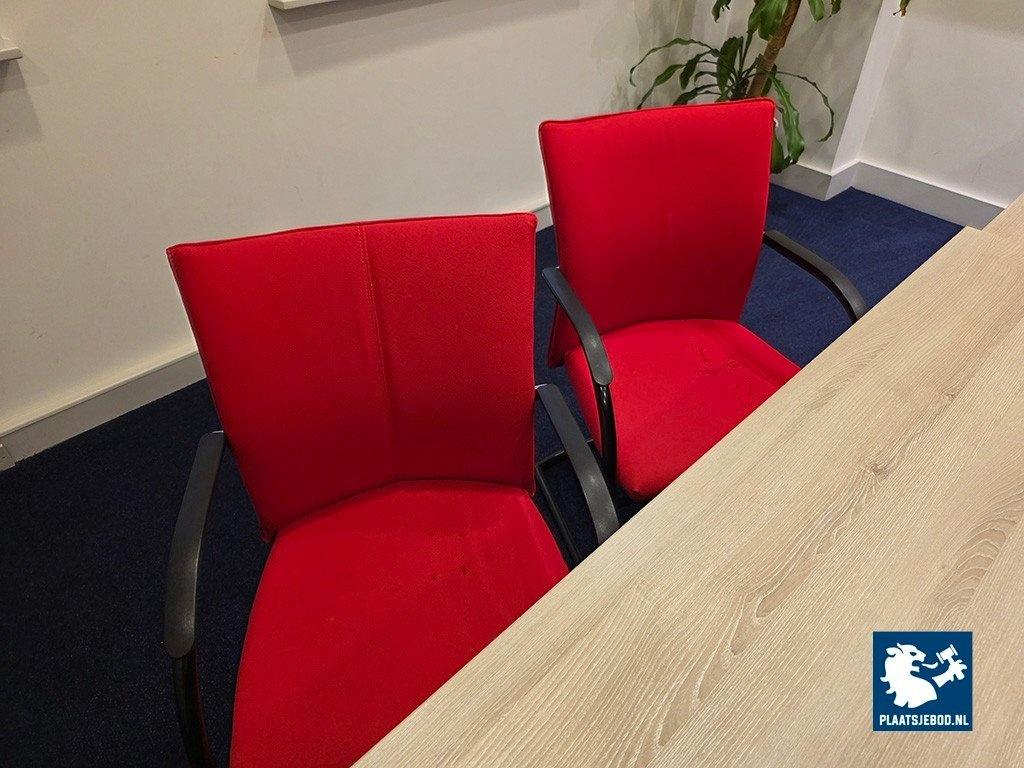 4 x Vergadertafel ca. 160 x 80 cm met 4 x rood gestoffeerde stoel met armleggers