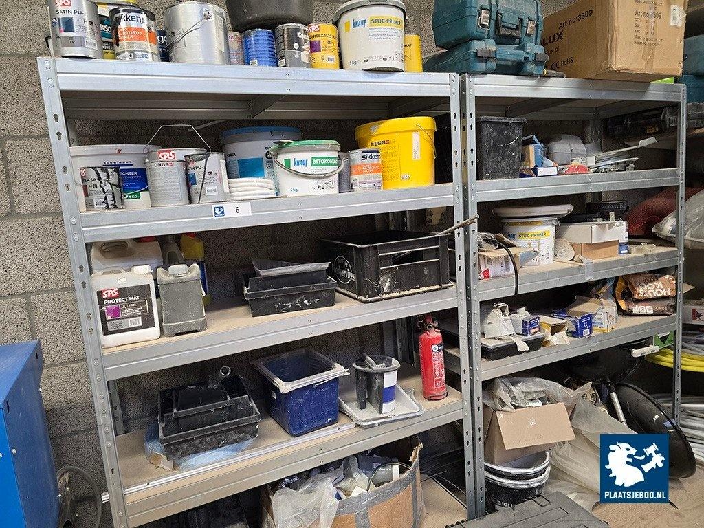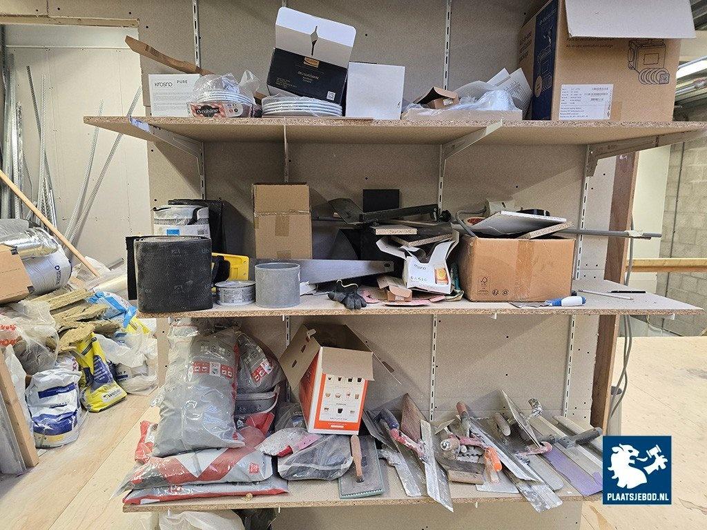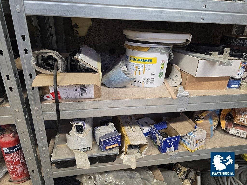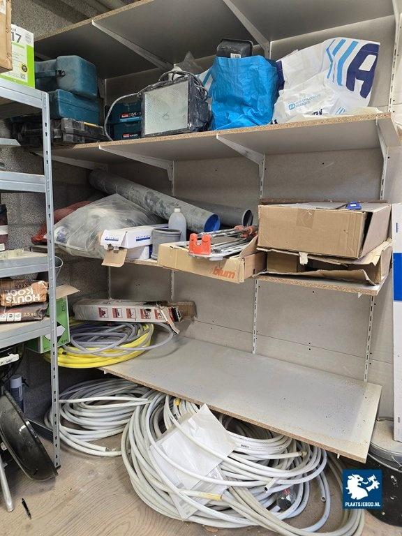 4 x Wandstelling met diverse inhoud waaronder stukadoors gereedschap, centrale luchtafzuiger, Uponor leiding, tegelsnijder, Weber BBQ, etc. Let op; de koper betaalt € 300,- borg t.b.v. een bezemschone oplevering, deze ontvangt de koper geheel retour bij een nette oplevering.