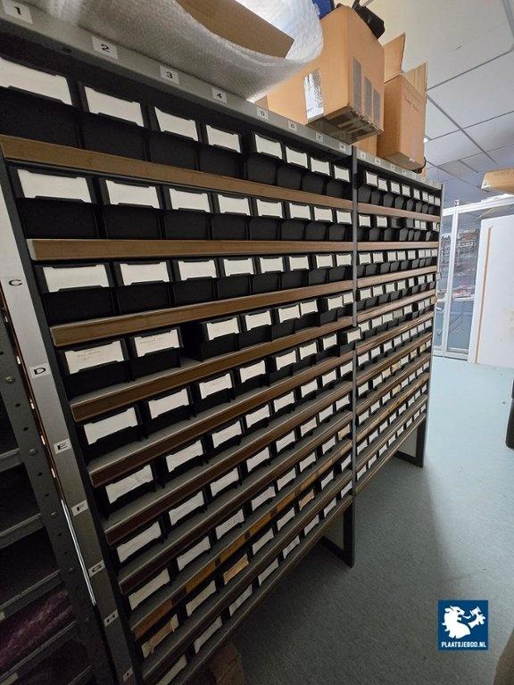 Kavel 323-065: 5 x Sectie metalen magazijnstelling met diverse inhoud