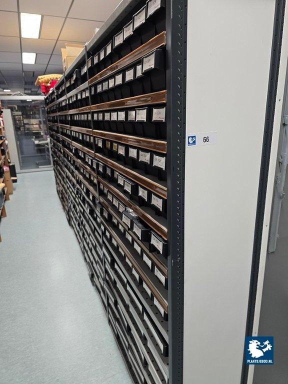 Kavel 323-066: 5 x Sectie metalen magazijnstelling met diverse inhoud
