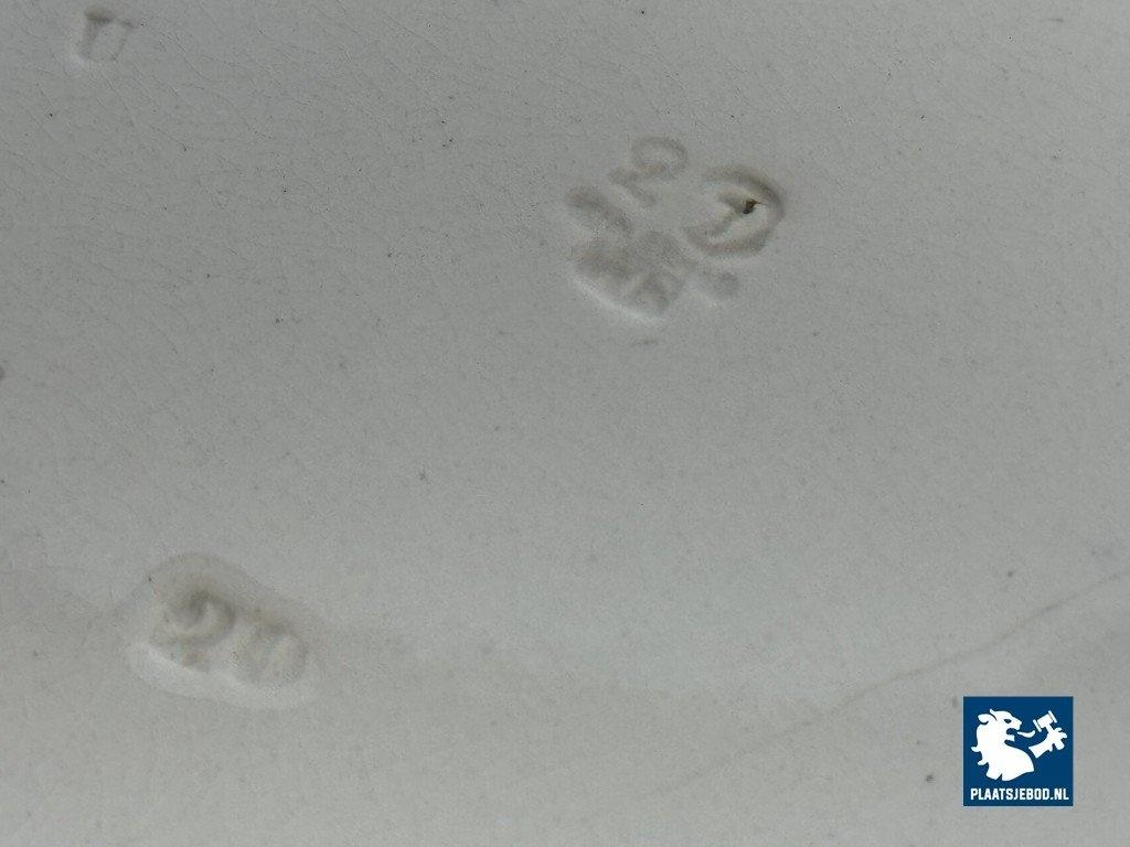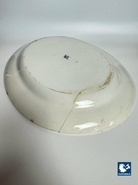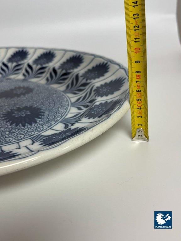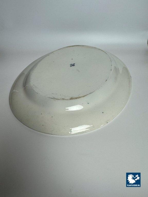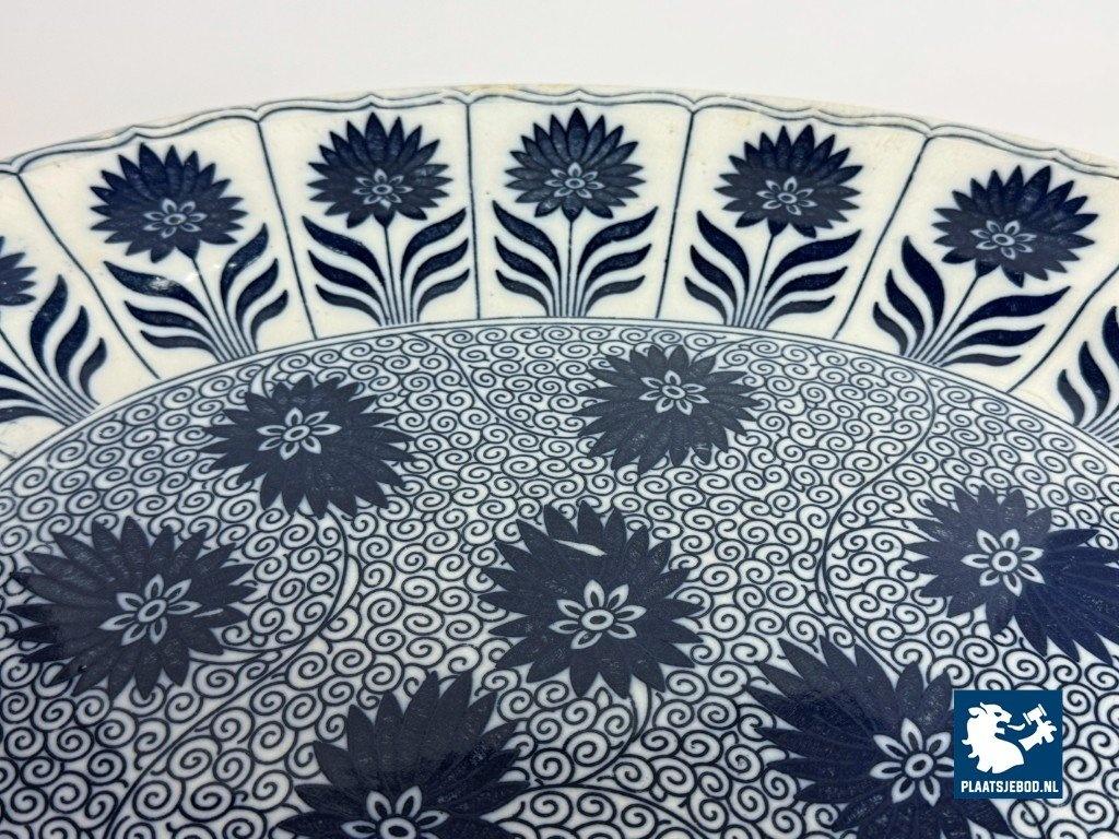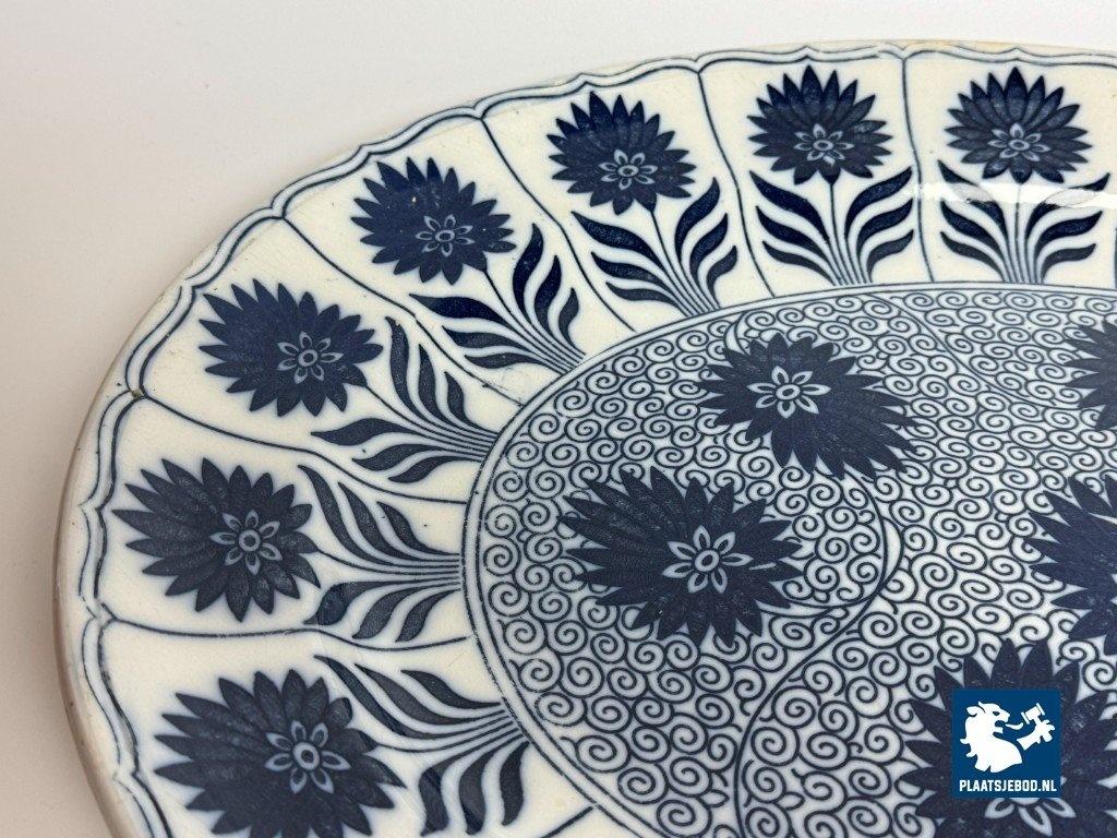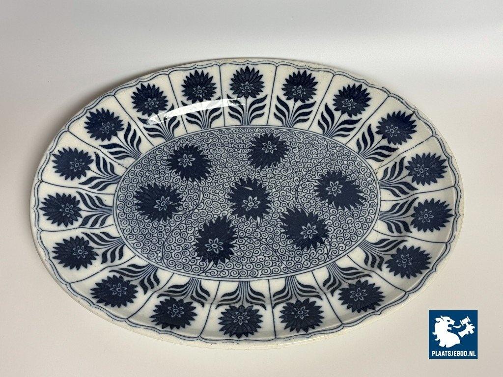 Exceptional large oval porcelain serving platter in the China Aster pattern, produced by Minton, England, late 19th century. This branded platter is decorated in rich cobalt blue on a white ground using transferware, featuring stylised floral motifs arranged rhythmically along the rim and central field. The platter is notable for its monumental size and refined Victorian ornament, reflecting Minton’s high standards in decorative tableware intended for both domestic use and formal presentation. Condition: No visual damage, stable hairline crack, not through; structurally sound with age-related wear. Founded in Stoke-on-Trent, Minton was one of England’s most prestigious porcelain manufacturers. The China Aster pattern belongs to Minton’s late-Victorian production, combining fashionable East Asian–inspired floral design with industrially advanced transfer printing. Large-format serving pieces like this were produced in smaller numbers and are especially sought after today. Dimensions: Length 53 Width 42 Height 4,5 cm.