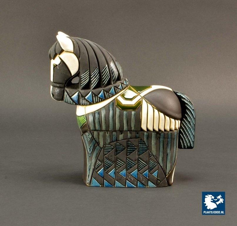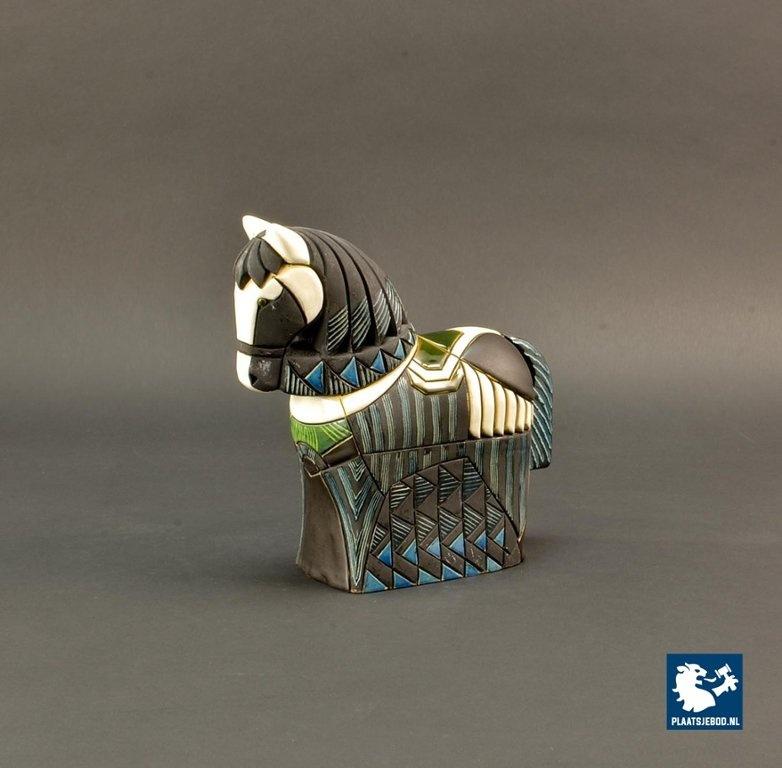 Artisania Rinconada Handcrafted Ceramic Horse Sculpture. Uruguay, 1960s. Artisania Rinconada horse sculpture from Uruguay. Beautiful mid-century handcrafted South American ceramic horse sculpture with inscripted signature. Style of decor and base markings of this very decorative piece with Kaleidoscoop patterns are very easily recognized and identified. Dimensions: H 22 W 20 D 7,5 cm.