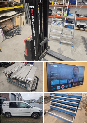 In opdracht van de curator in het faillissement van Bouw Studio Aalsmeer B.V. te Aalsmeer verkopen we de aanwezig inventaris bestaande uit onder andere elektrische in hoogte verstelbare bureaus, HP Color Laserjet, conferentietafels met conferentiestoelen, diverse palletinhaakstellingen, 3 x Intergas Xtend5 warmtepomp, Makita mobiele zaagtafel, 65 inch LCD TV, diverse handgereedschappen, EP Equipment elektrische palletheffer, Volkswagen Caddy 2.0 Tdi etc.