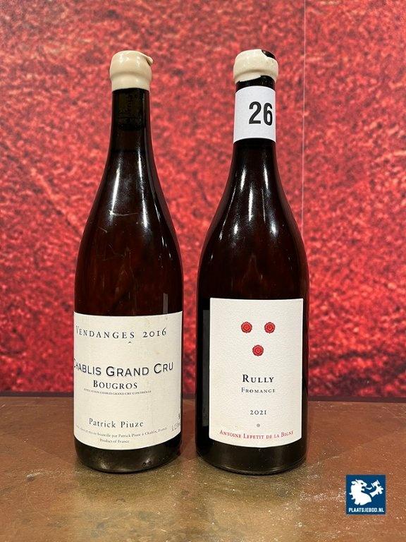 Kavel 223-026: 1 x Chablis Grand Cru Bougros, 12,5%, Patrick Piuze, Chablis, Frankrijk; 1 x Rully Fromange, 2021, 12,5 % - WIT