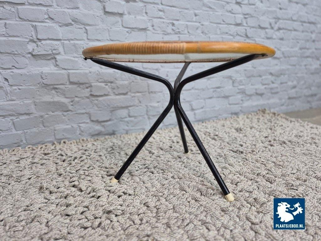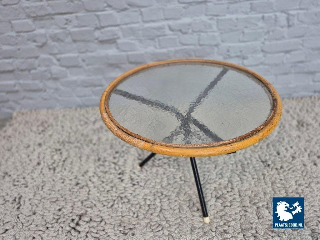 Kavel 311-012-937-C1b: Bamboo & Glass Side Table, Black Lacquered Tripod Frame – The Netherlands, 1960s