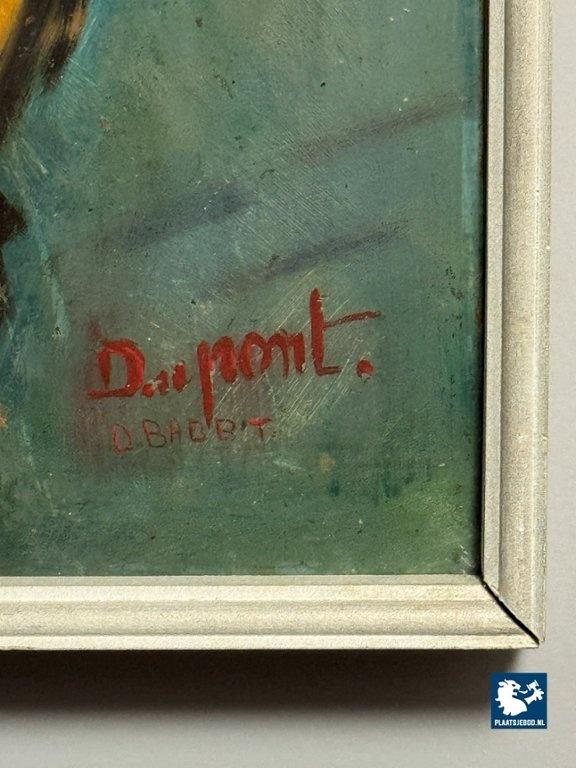 The painting is signed with the name “Dupont,” accompanied by a second, different name, indicating that the work should be understood as inspired by rather than authored by Maurice Dupont. It is therefore offered as a derivative or homage work, not as an original by the named artist.