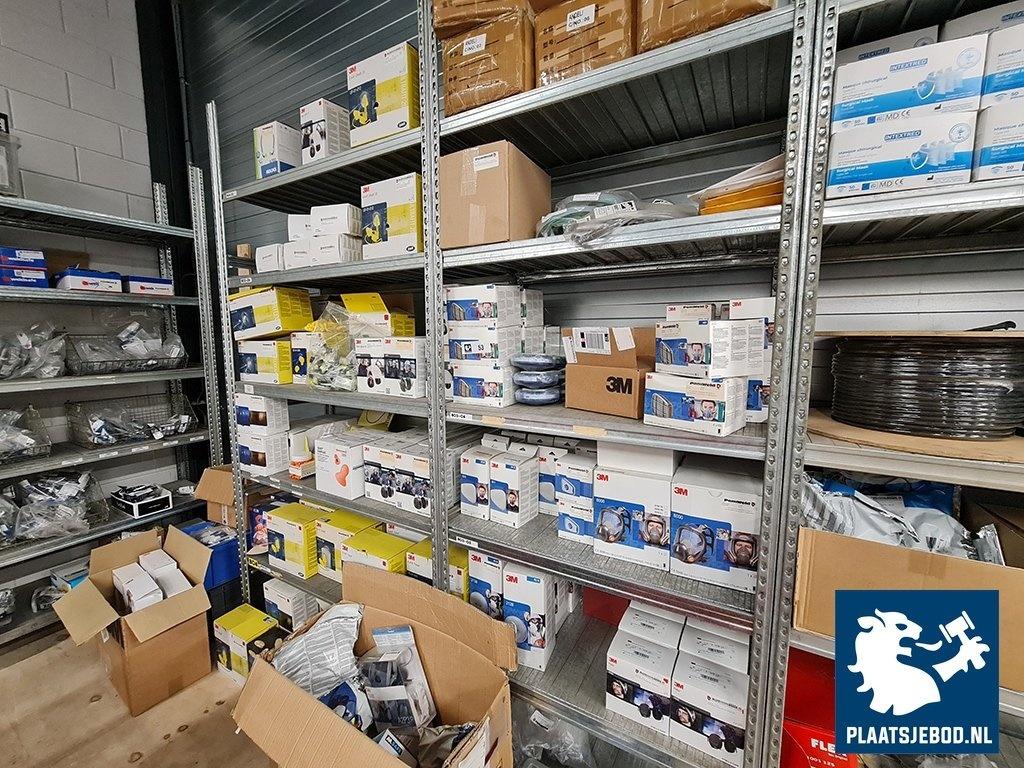 5 x Sectie magazijnstelling met inhoud w.o. decoratiematerialen, toebehoren, verpakkingsmateriaal etc. LET OP de koper dient een borg van 400,- euro te betalen voor bezemschone oplevering van het kavel. Deze borg komt geheel retour na de bezemschone oplevering.