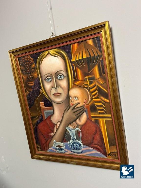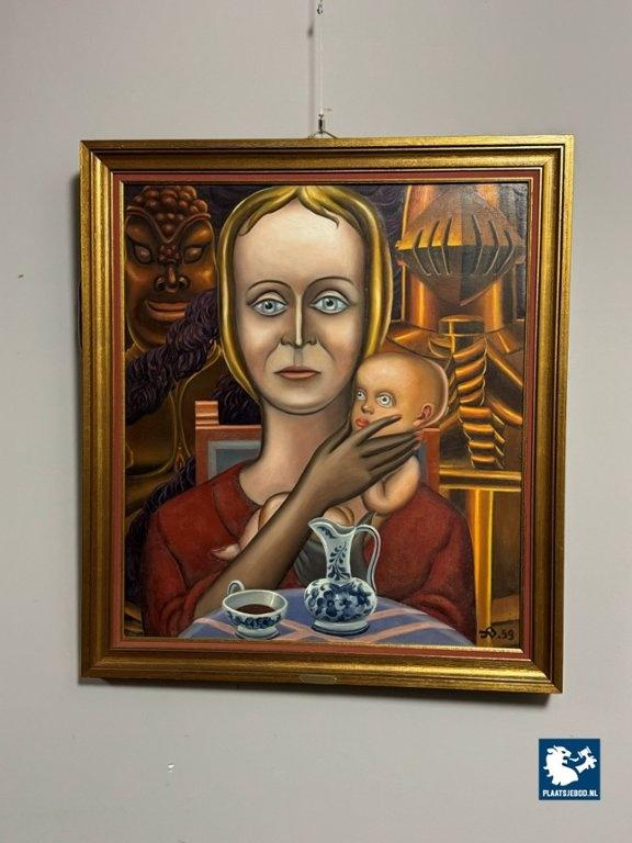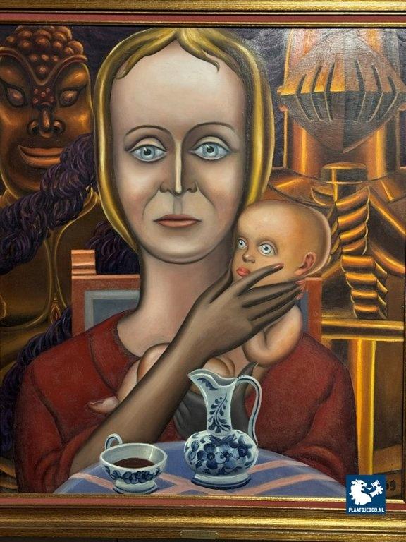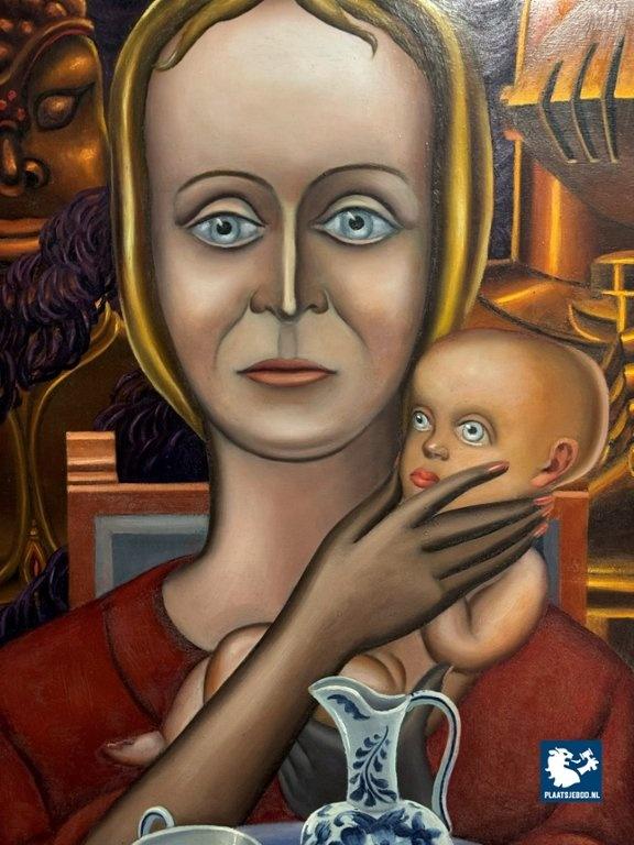 The work exemplifies Vercnocke’s distinctive artistic approach: a controlled, serene surface concealing a complex symbolic system, merging figurative surrealism, allegorical realism, and metaphysical symbolism. Geborgenheid stands as a contemplative meditation on inner safety, spiritual protection, and psychological containment, expressed through a refined symbolic composition of timeless character. Dimensions Frame: Height 92 Width 82 cm. Visual: Height 79 Width 69 cm.