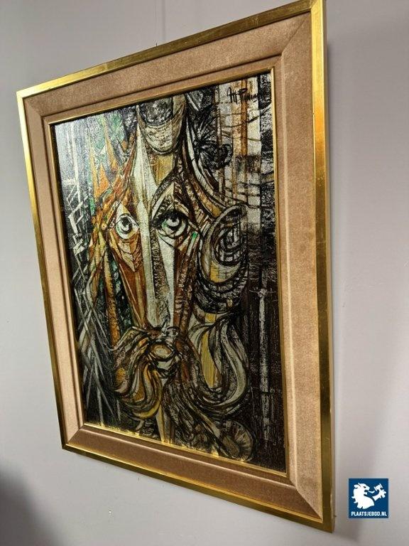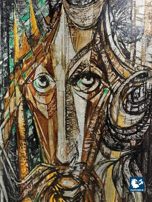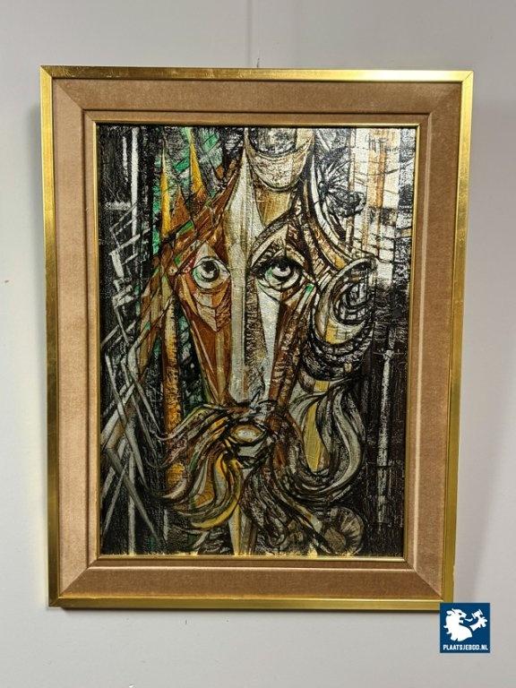 This work belongs to the tradition of sacral expressionist abstraction within mid-20th-century Belgian art, where religious iconography, archetypal symbolism, and modernist abstraction converge into a powerful, timeless visual language.. Dimensions Frame: Height 111 Width 86 cm. Visual: Height 89,5 Width 64,5 cm.