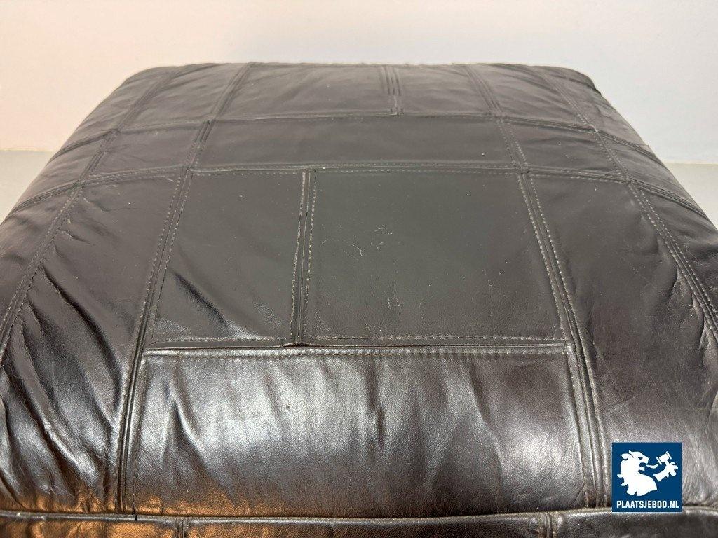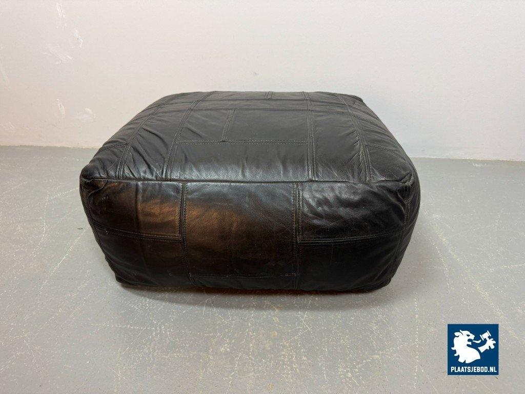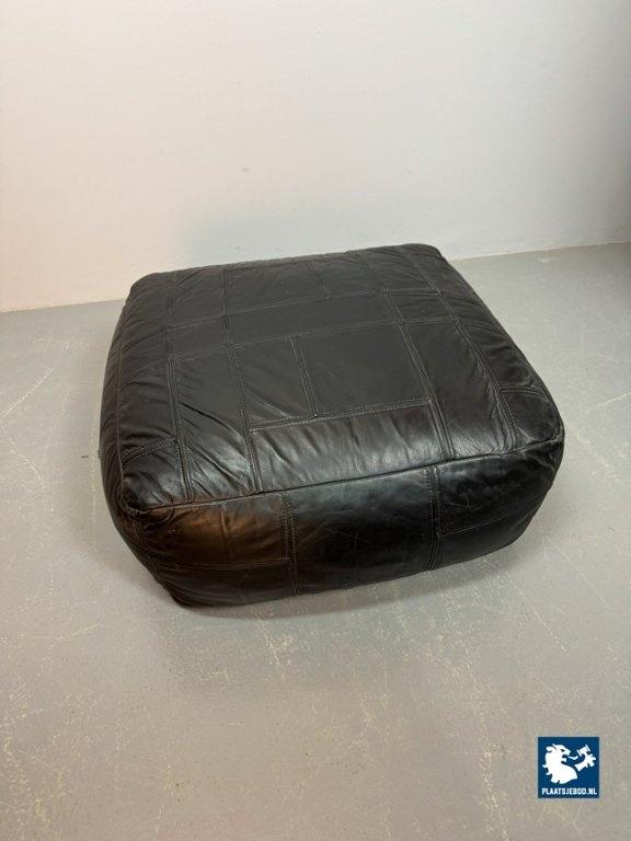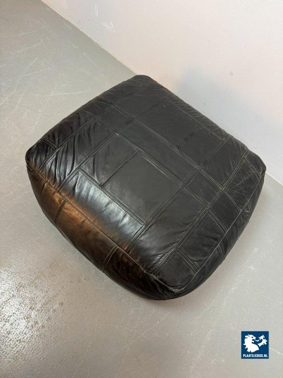 Kavel 311-084-CH314-A3: High Quality Big Black Patched Leather Pouf in Style of De Sede, 1960s.