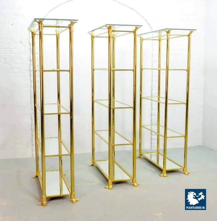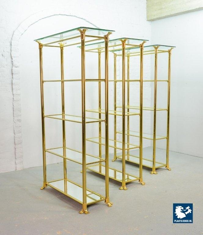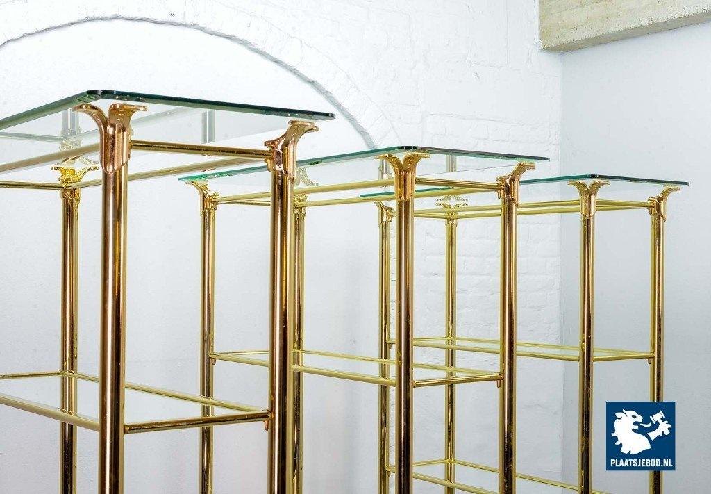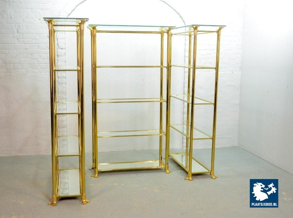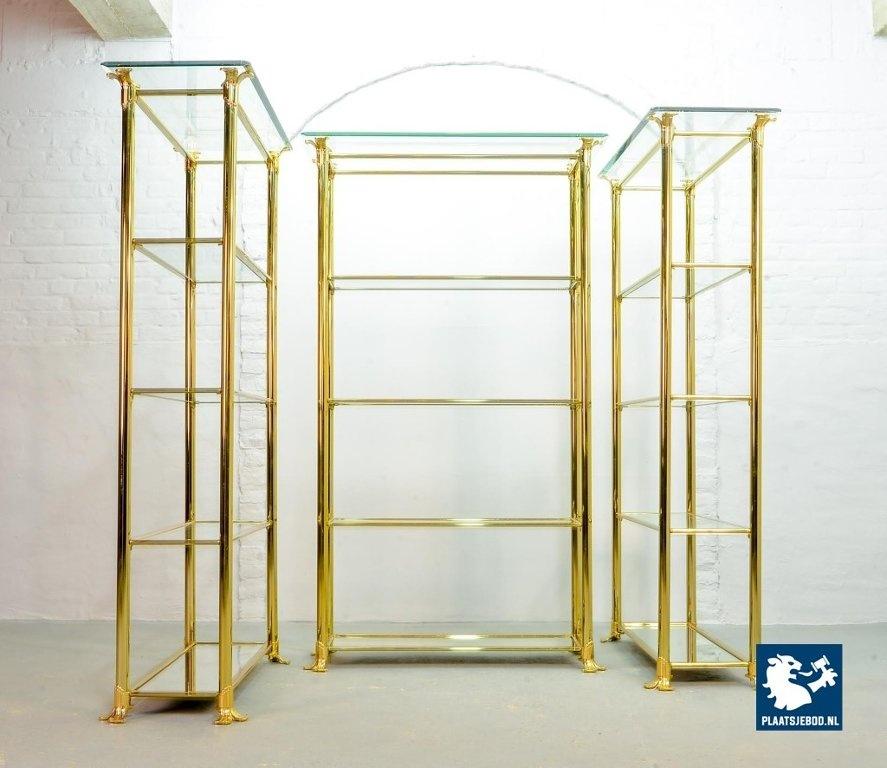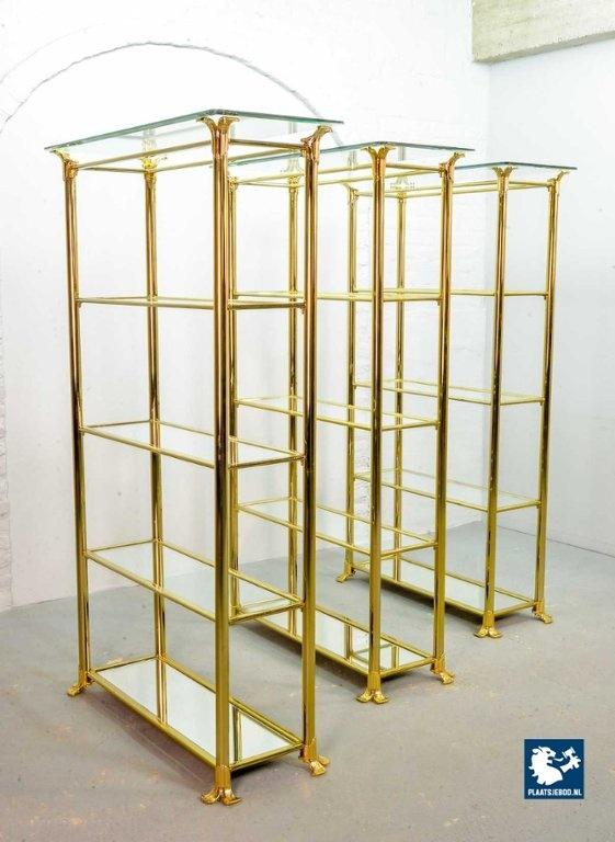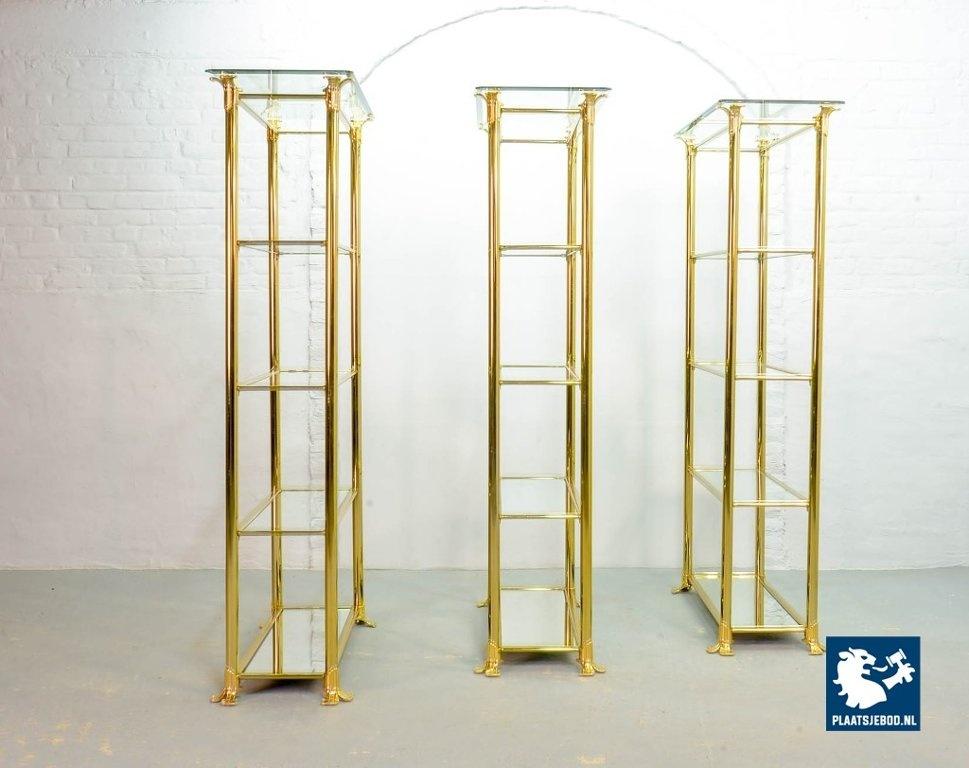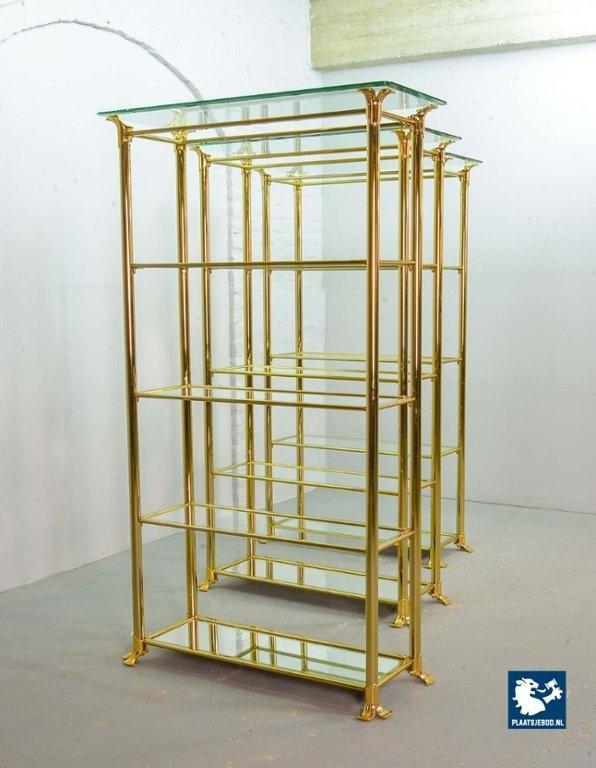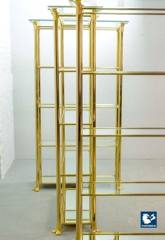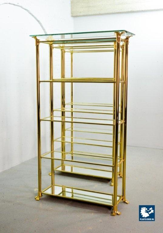 Kavel 311-014-ST022-2-S3: Hollywood Regency Style Ramiro Tarazona 24 Carat Gold Plated Mid-Century Display Cabinet with Glass Shelves. Spain, 1980s.