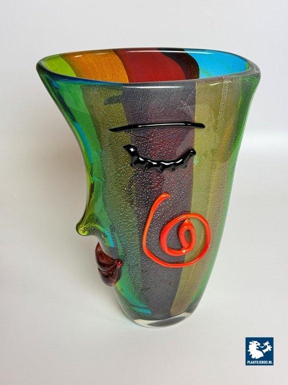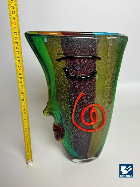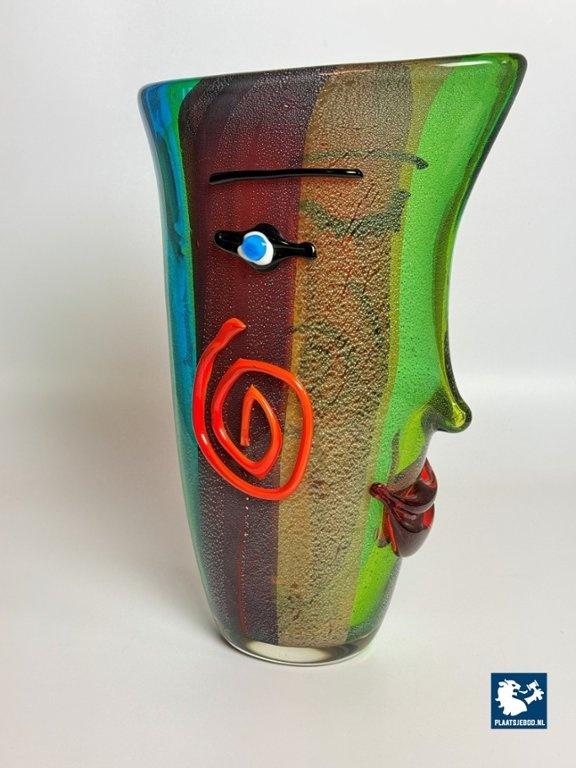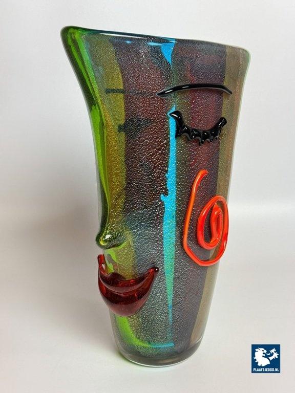 Kavel 311-060-V050-B3: Large Mid-Century Sculptural Vibrant Murano Glass Face Vase with Applied Features. Italy, 1970s-1980s.