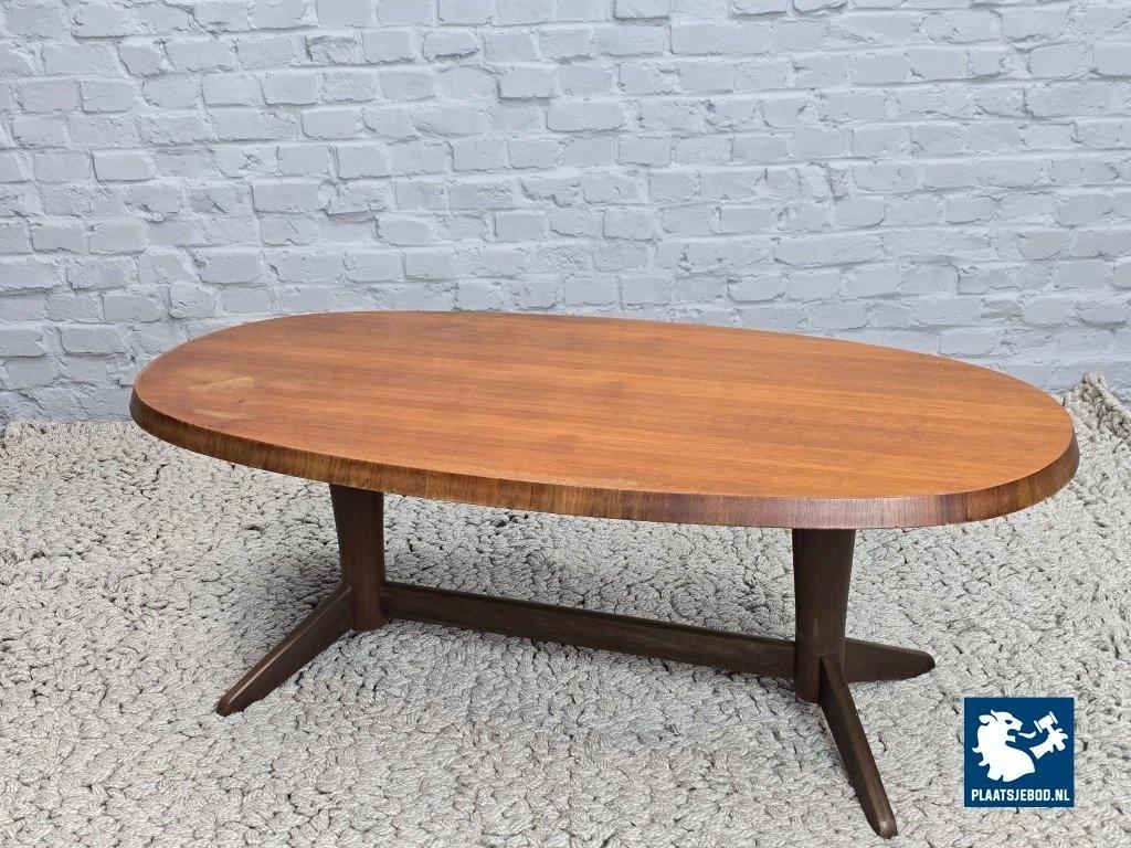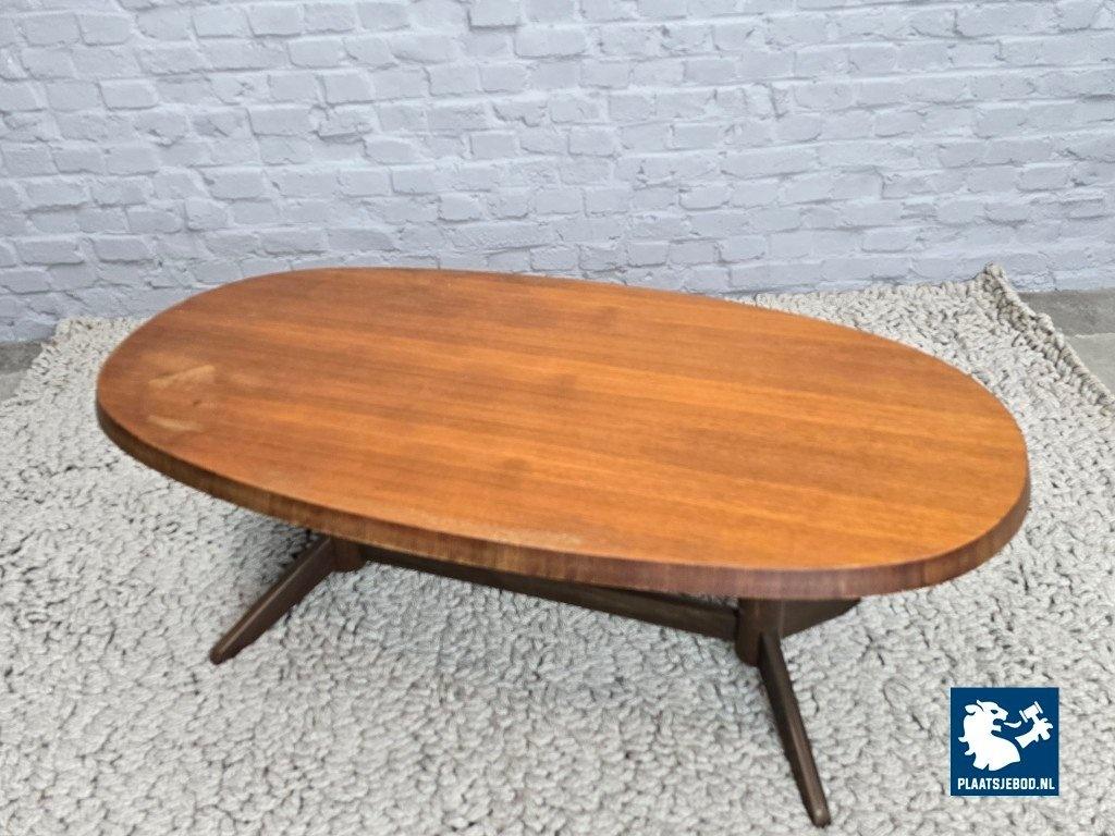 Kavel 311-127-CT746-1-A: Mid-Century Danish Modern Design Oval Teak Coffee Table with Sculptural Pedestal Base, 1960s.