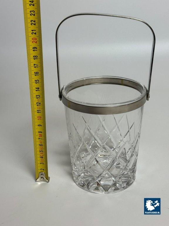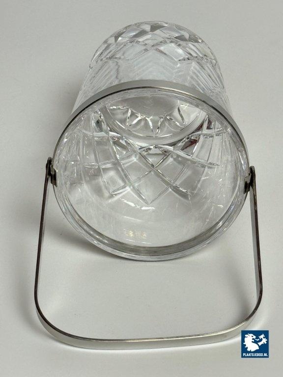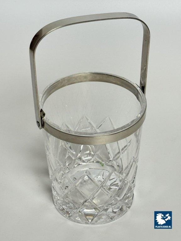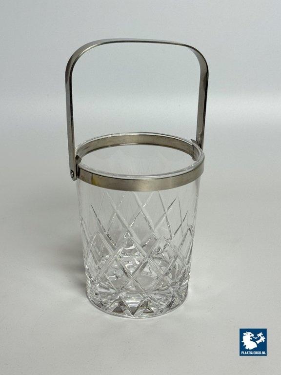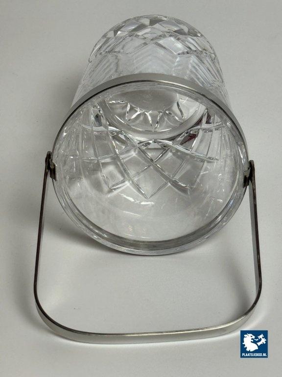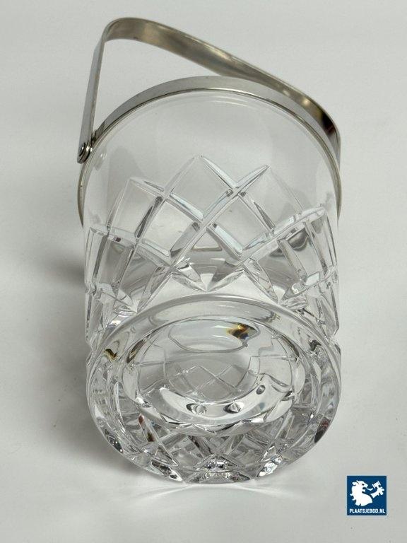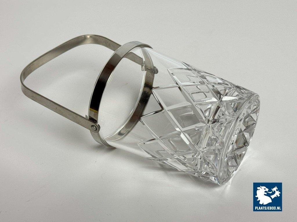 Kavel 311-065-DA-016: Mid-Century Design Hand-Cut Lead Crystal Ice Bucket with Stainless Steel Handle by C.A.L.P. Europe, 1980s