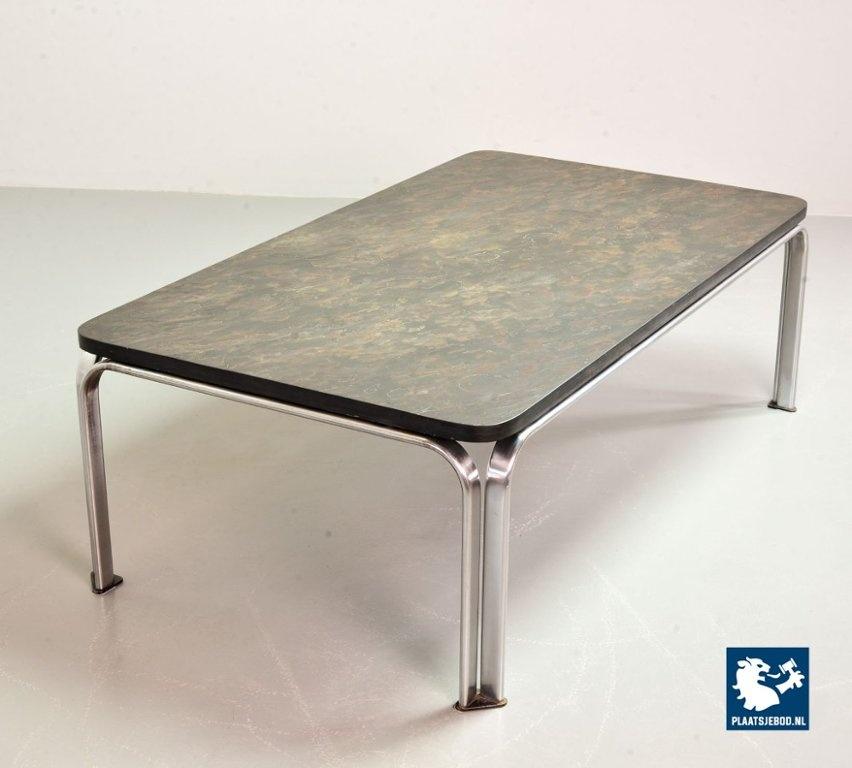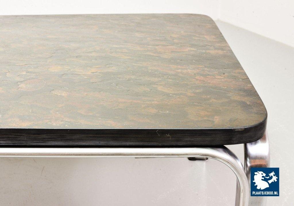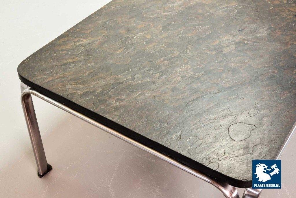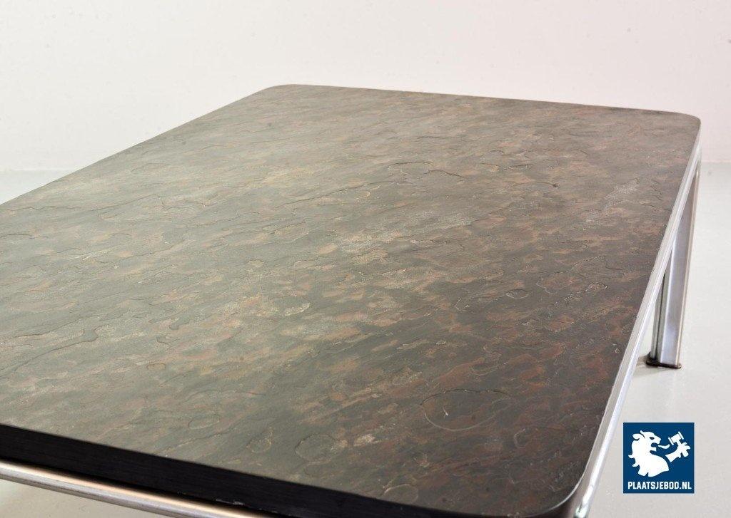 Kavel 311-045-CT085: Mid-Century Heinz Lilienthal Slate Blackstone Rectangle Coffee Table, Model ‘Bogota’ on Chrome Base. Germany, 1970s.