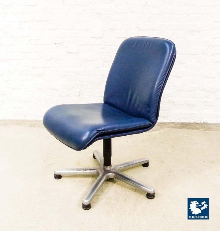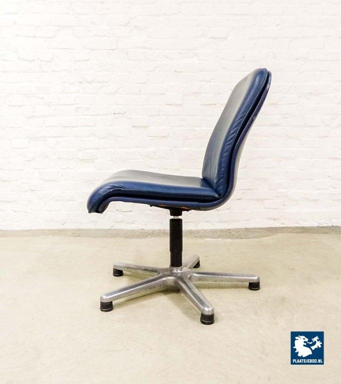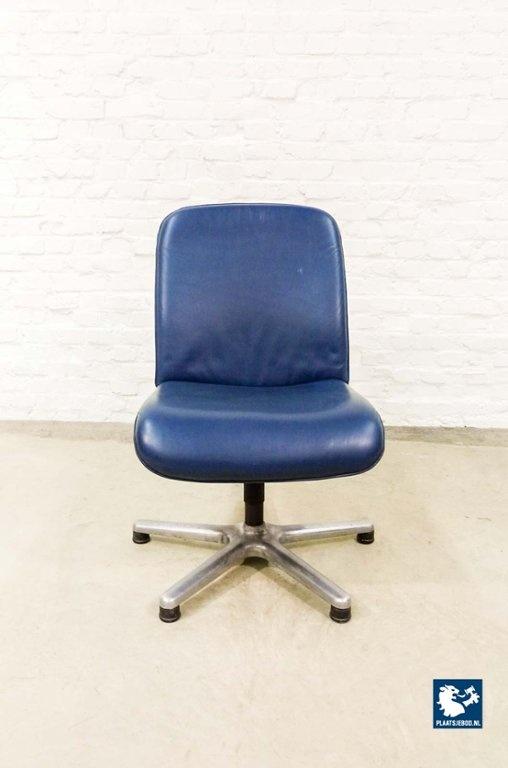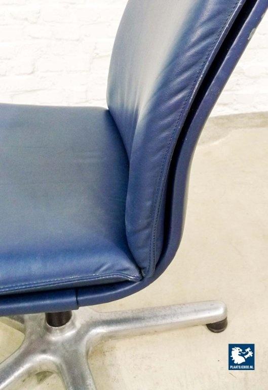 Kavel 311-116-CH053: Mid-Century High Quality Sitag Ocean Blue Leather Executive Desk Chair. Switzerland, 1970s.