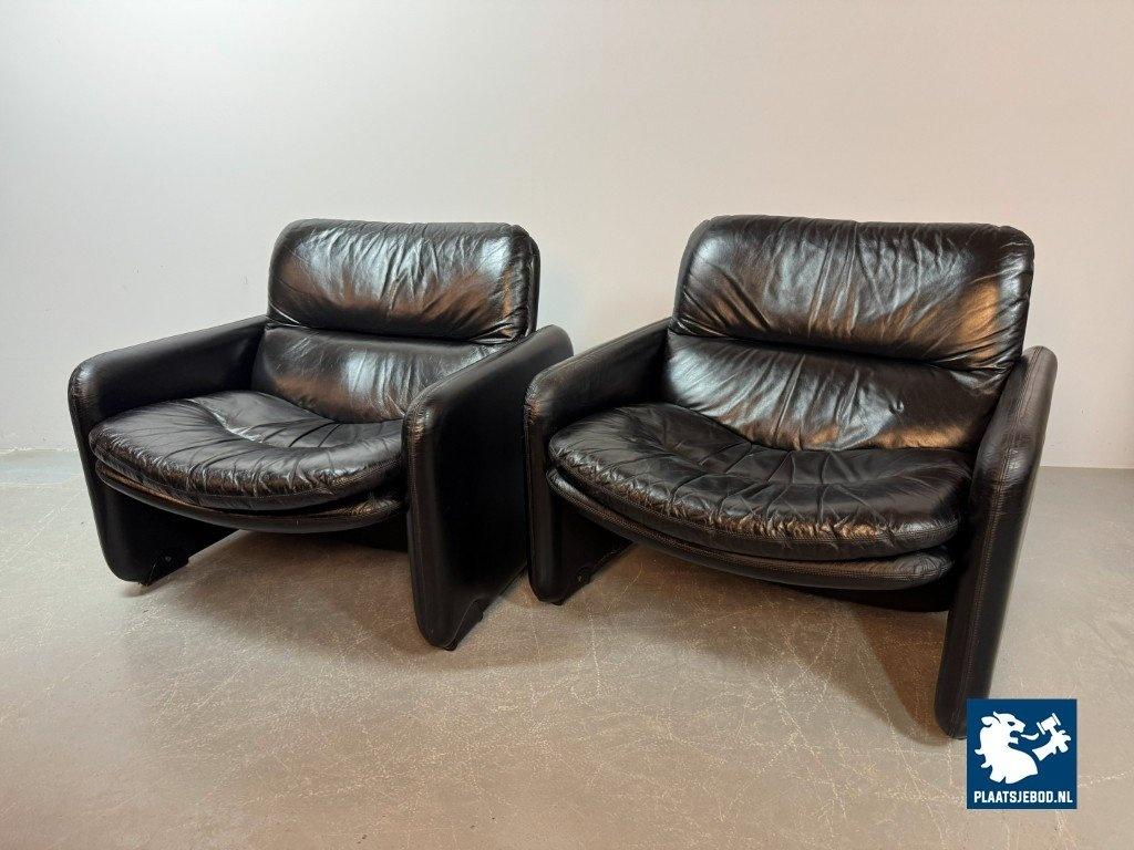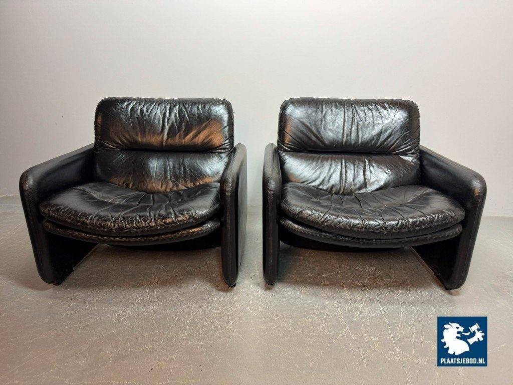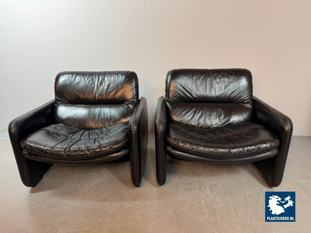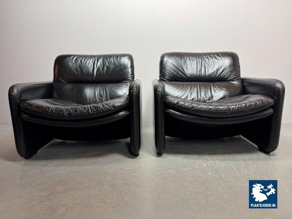 Kavel 311-140-CH340-a-A2: Mid-Century Italian Design Black Leather Lounge Chairs by Titina Ammannati & Giampiero Vitelli for Brunati, Italy, 1970s