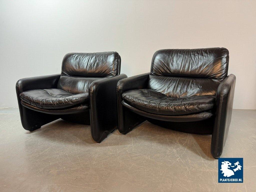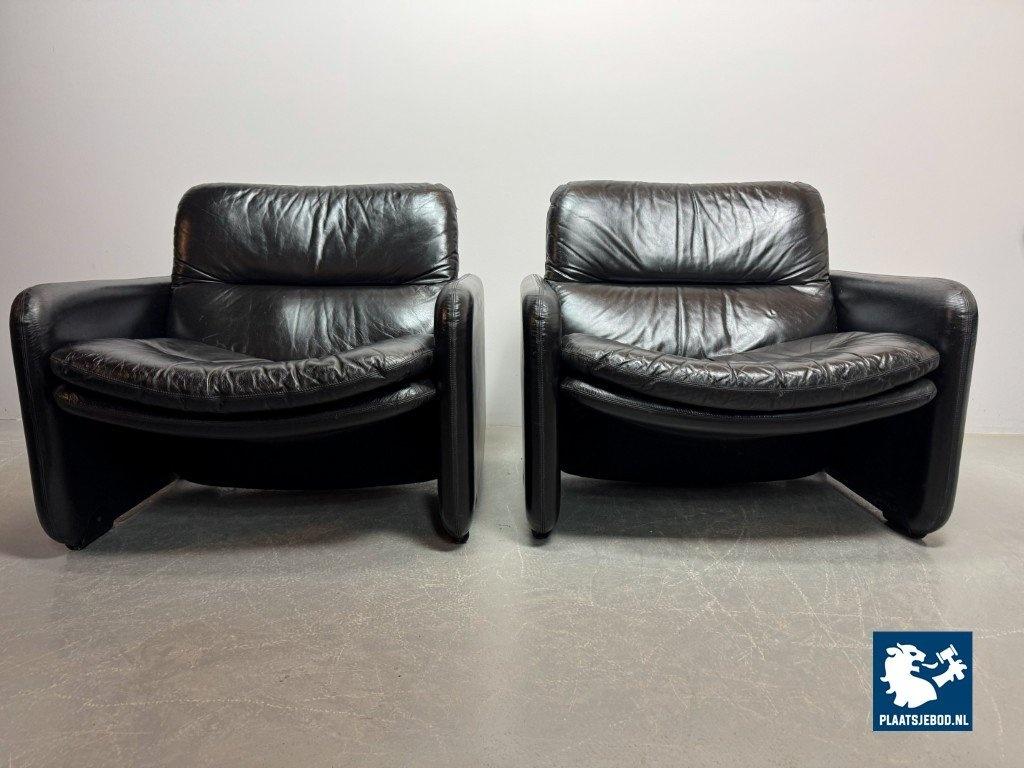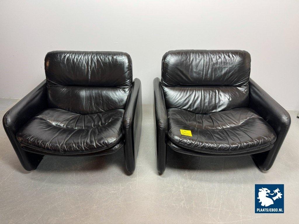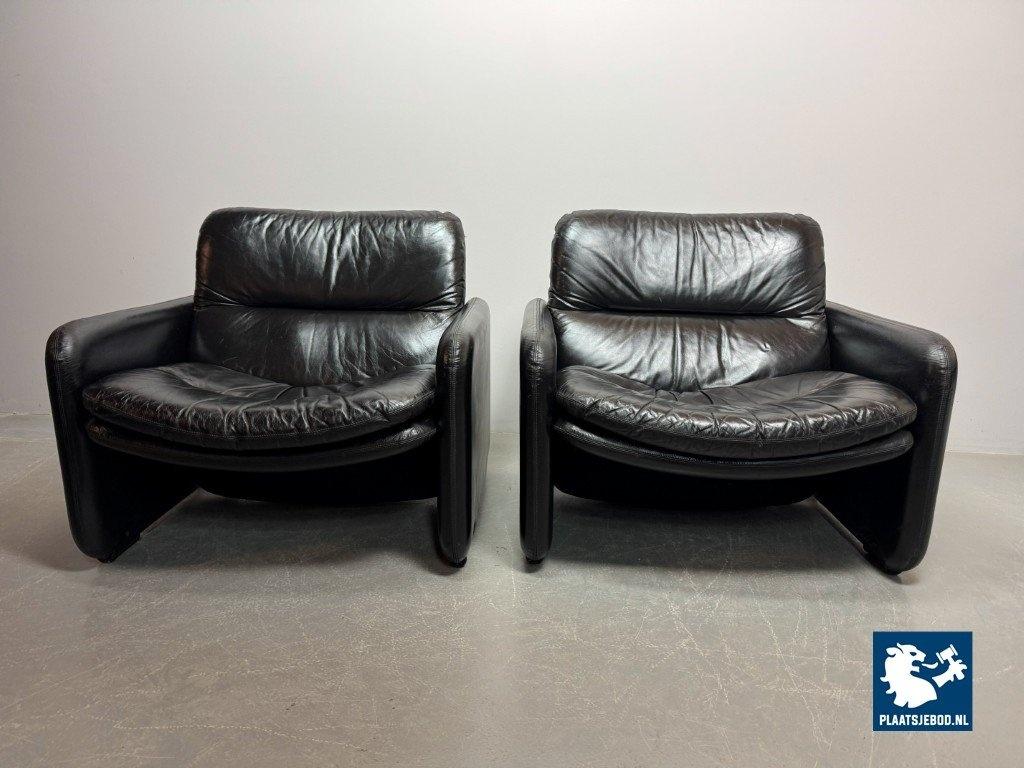 Kavel 311-140-CH340-a-A2: Mid-Century Italian Design Black Leather Lounge Chairs by Titina Ammannati & Giampiero Vitelli for Brunati, Italy, 1970s