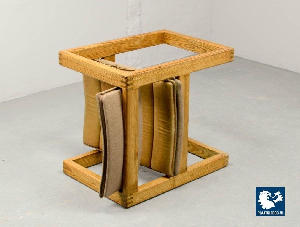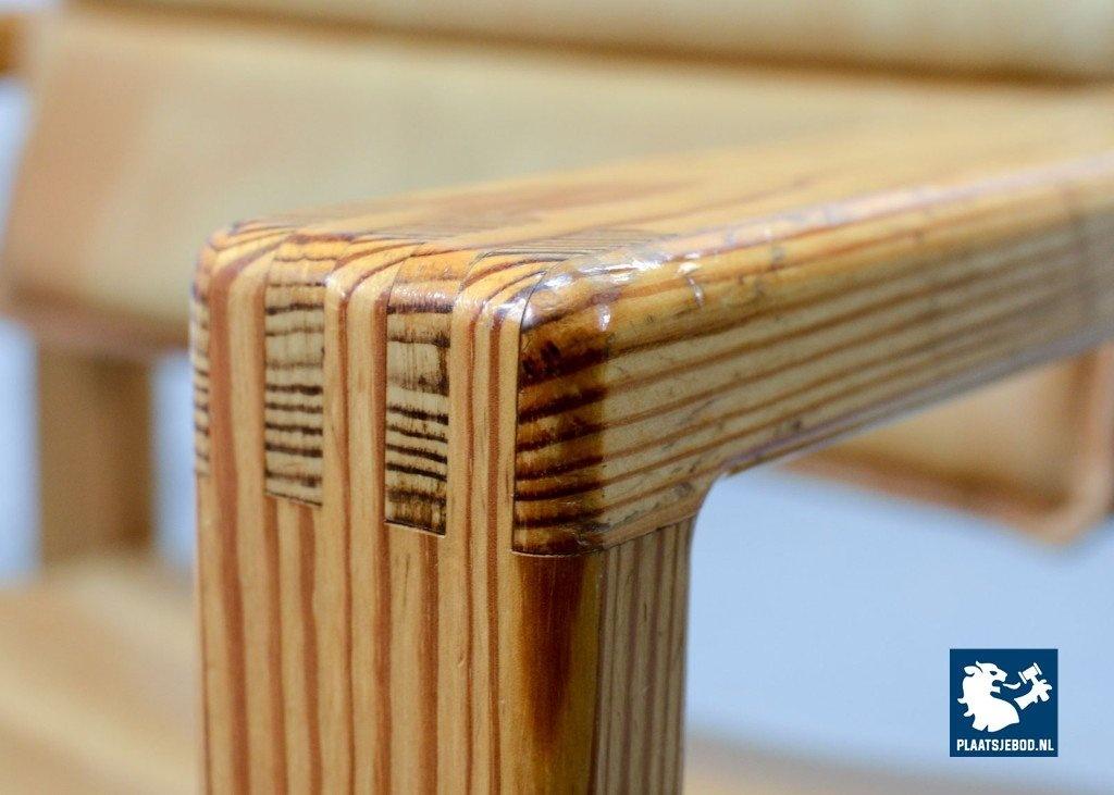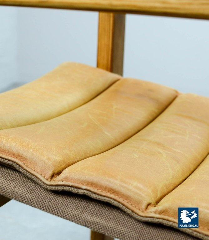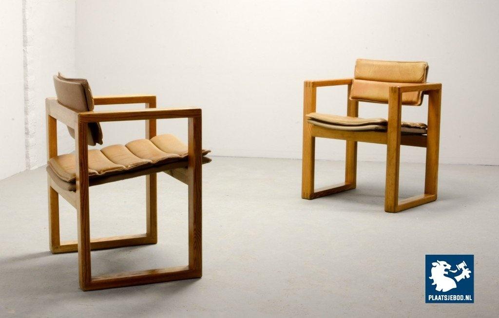 Kavel 311-095-CH128: Mid-Century Pair of Dutch Design Camel Leather Cubic Pinewood Side Chairs by Ate van Apeldoorn for Houtwerk Hattem, The Netherlands 1960s.