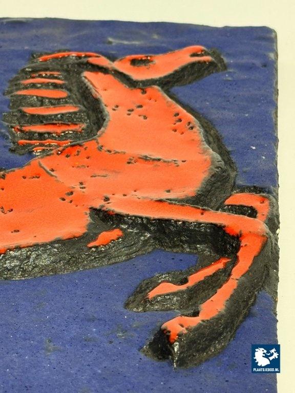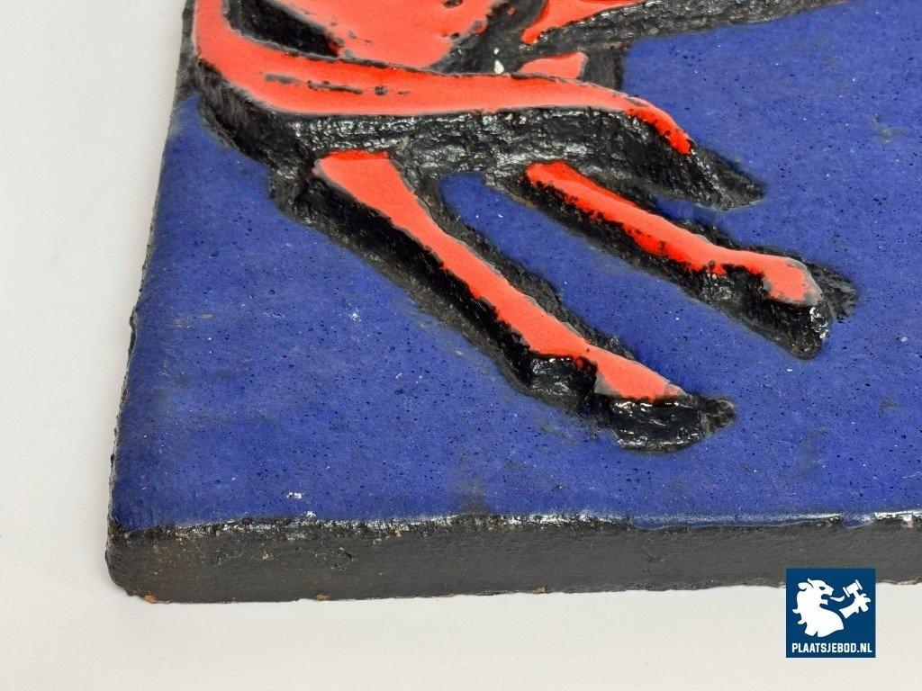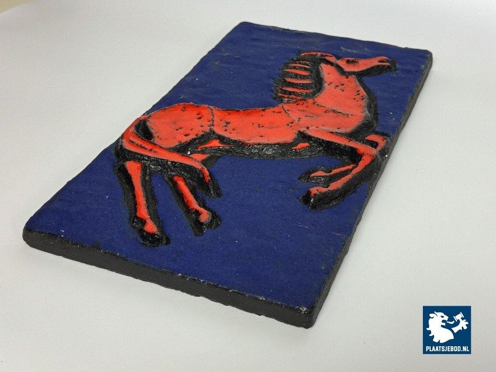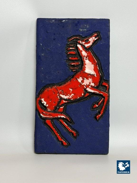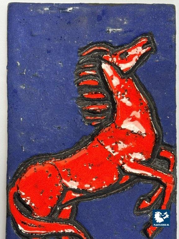 Kavel 311-097-DA-045-B3: Mid-Century Ruscha Fat Lava Wall Tile with Rearing Red Horse in Deep Azure Blue. West Germany, 1960s