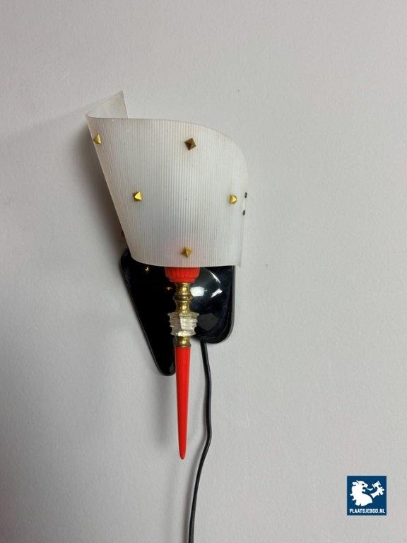 Kavel 311-025-215-2WL-B3: Playful Mid-Century Design Pierre Guariche Wall Sconce with Red Accent, France, 1960s