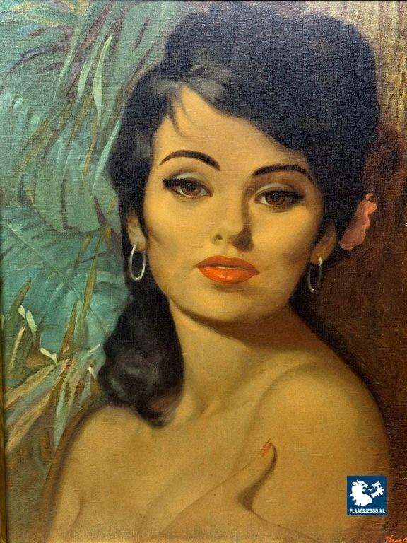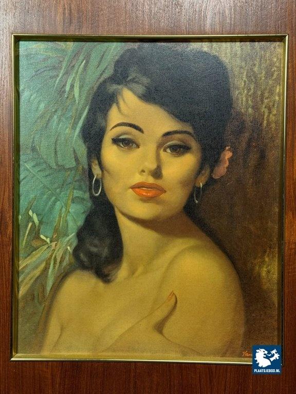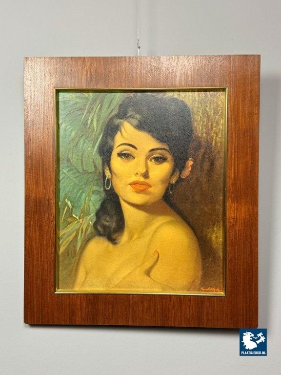 Kavel 311-104-PF063-S4: Portrait of a young woman (Lolita) by Vandersyde. Printed canvas in wooden frame, 1970s.
