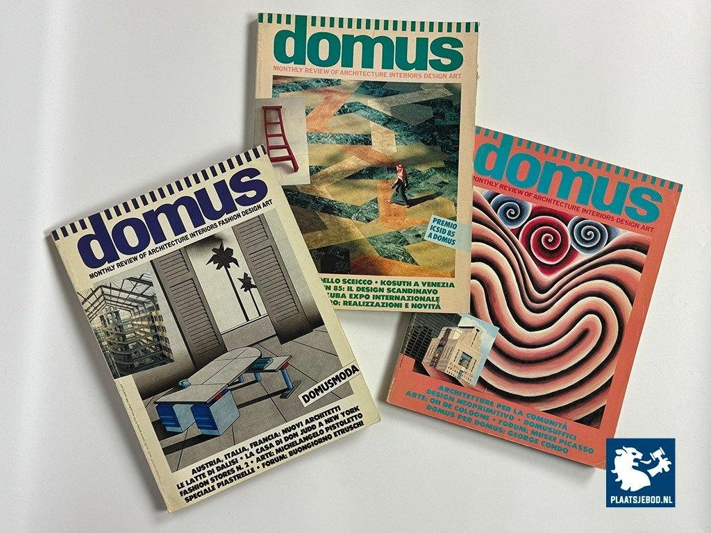 Kavel 311-145-DM1985-PPL: Set of 3 original vintage issues of Domus Magazine, dating from 1985. This bundle includes the following issue numbers: 664, 665 and 667.
