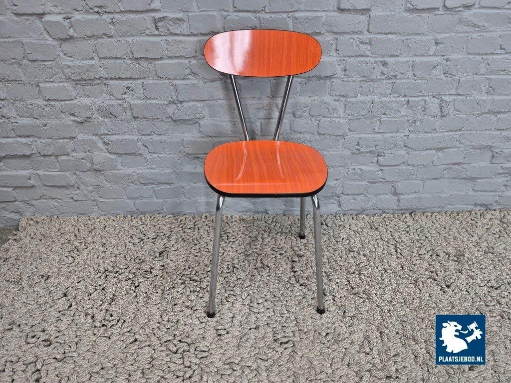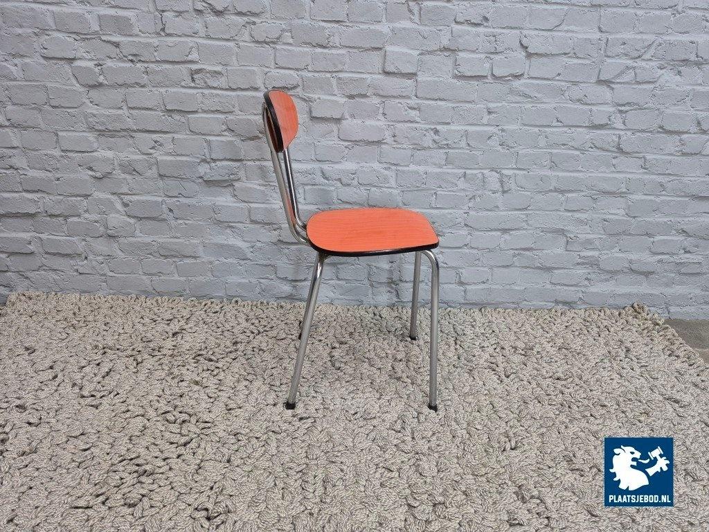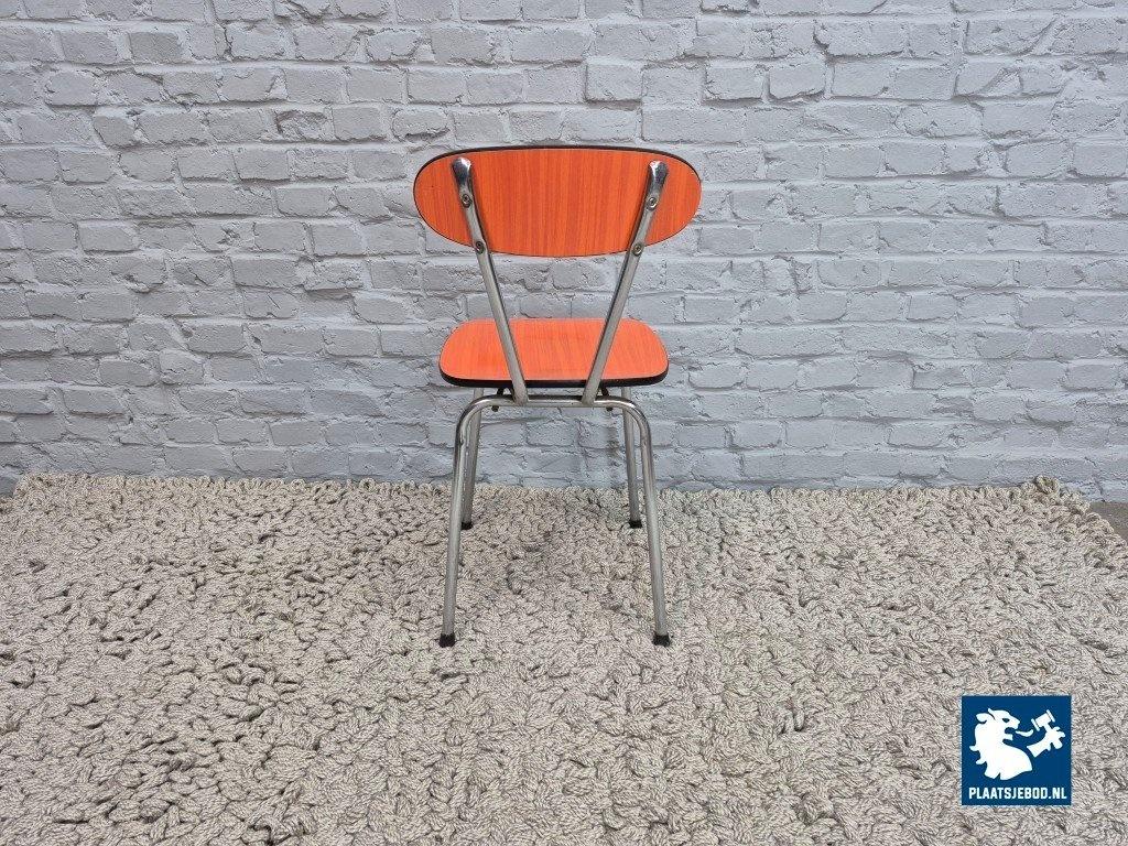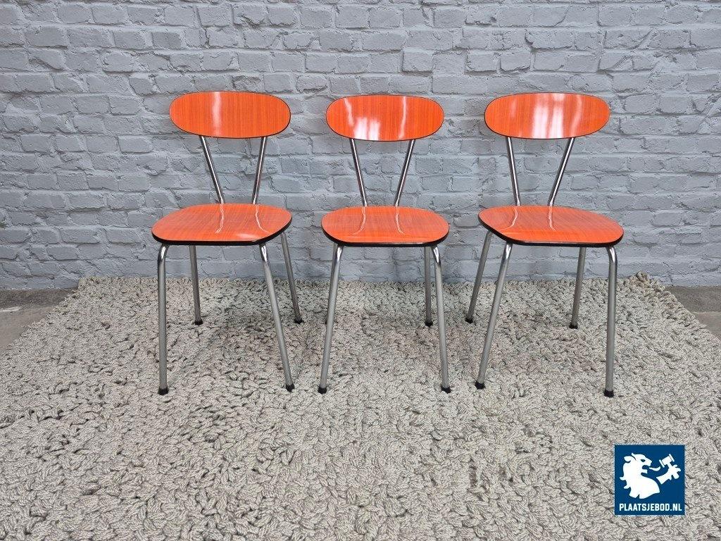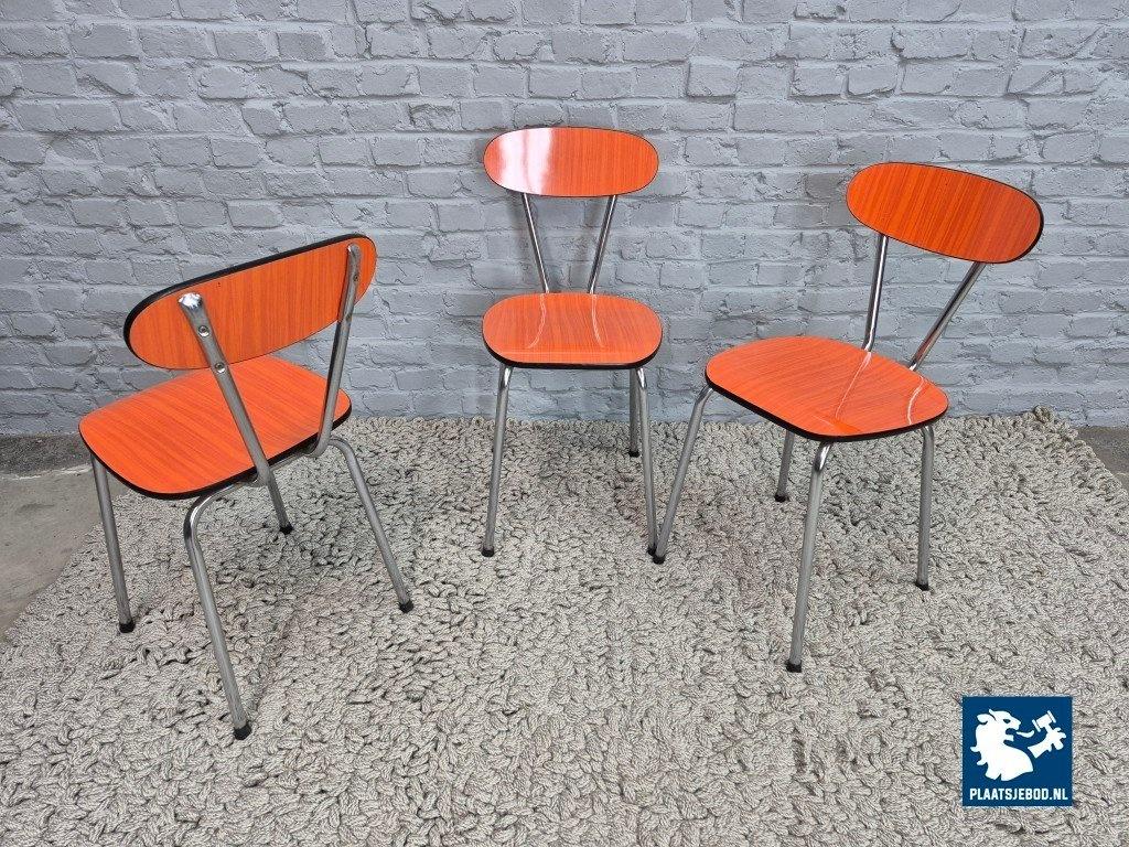 Kavel 311-111-915CH-C1b: Set of 3 Vintage Design Kitchen Chairs by Brabantia, Orange Striated Formica, The Netherlands, 1960s