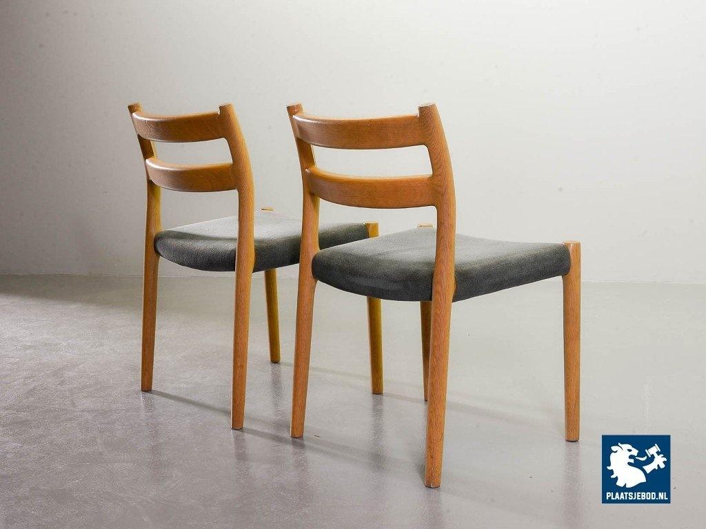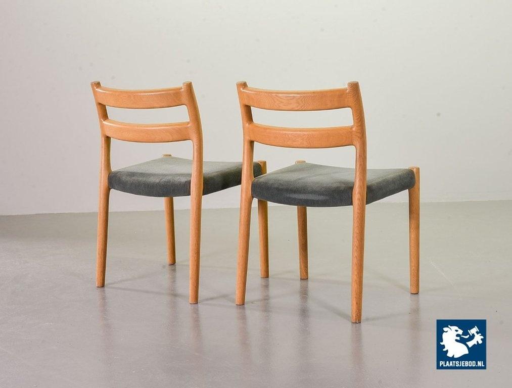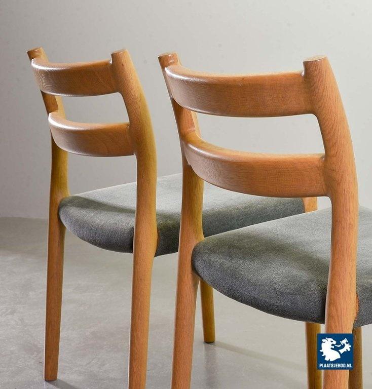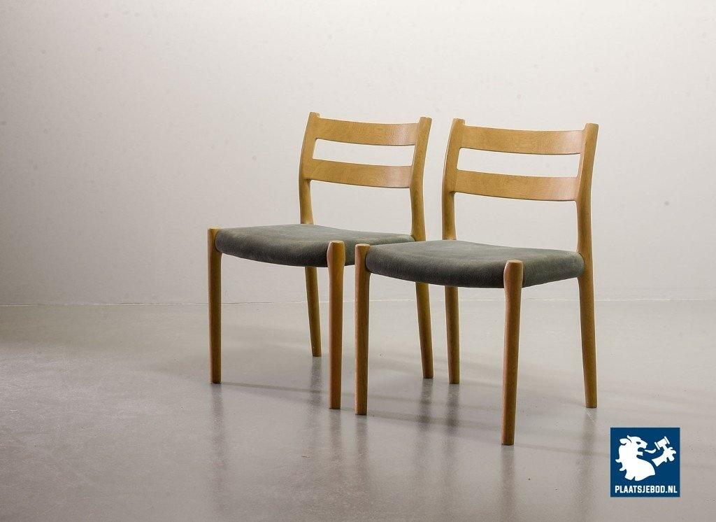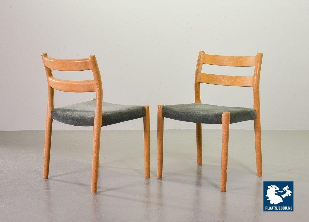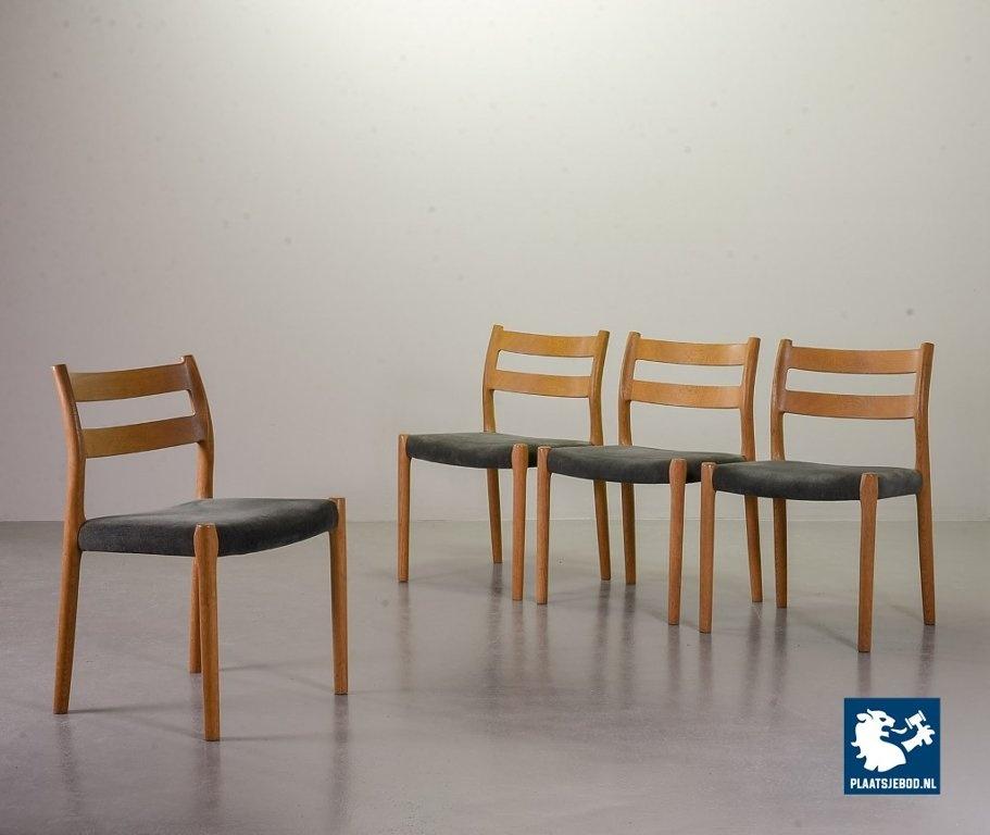 Kavel 311-080-CH182-C1b: Set of 4 Niels Otto Moller Mid-Century Design Dining Chairs Model 84 in Solid Beech Wood and Soft Grey Velvet Upholstery. Denmark, 1960s.