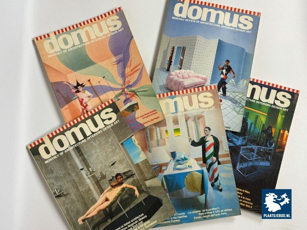 Kavel 311-009-DM1982-PPL: Set of 5 original vintage issues of Domus Magazine, dating from 1982. This bundle includes the following issue numbers: 625, 626, 630, 632 and 633.