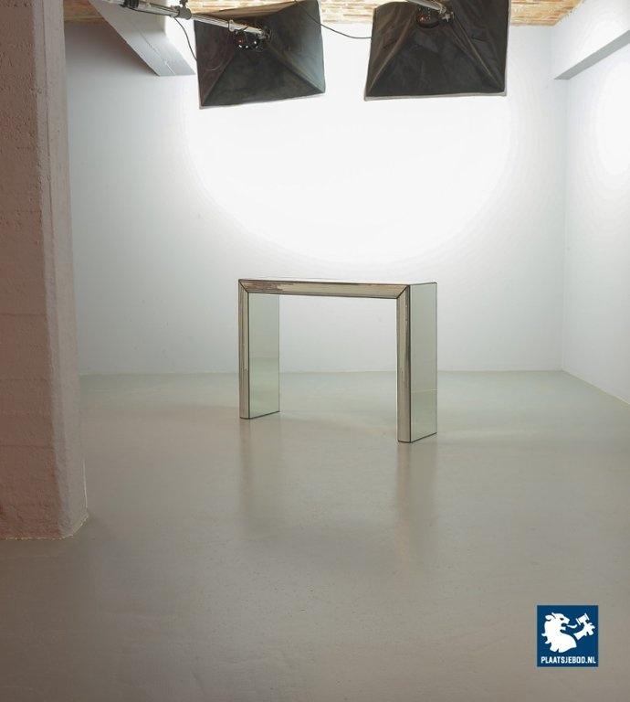 Kavel 311-113-008OT: Very Exclusive Eyecatching Minimalistic Handcrafted Silver Mirror Console Table / Wall Art Object, 1980s.
