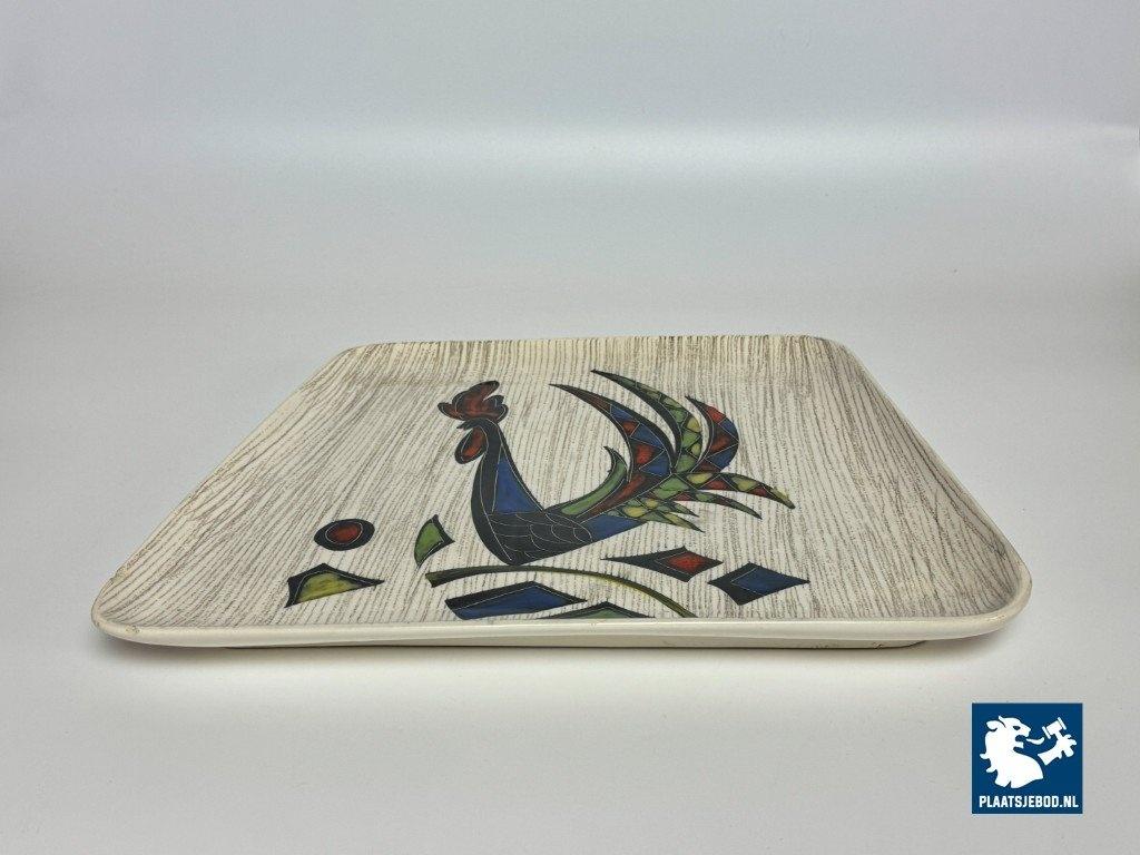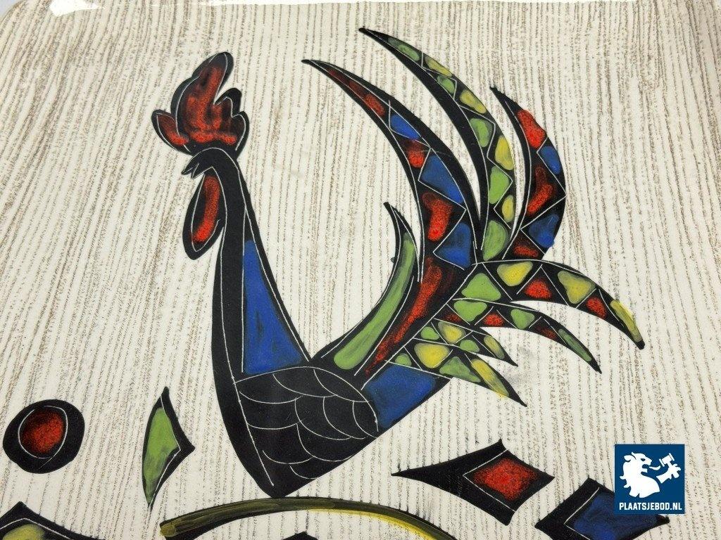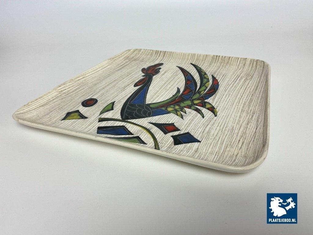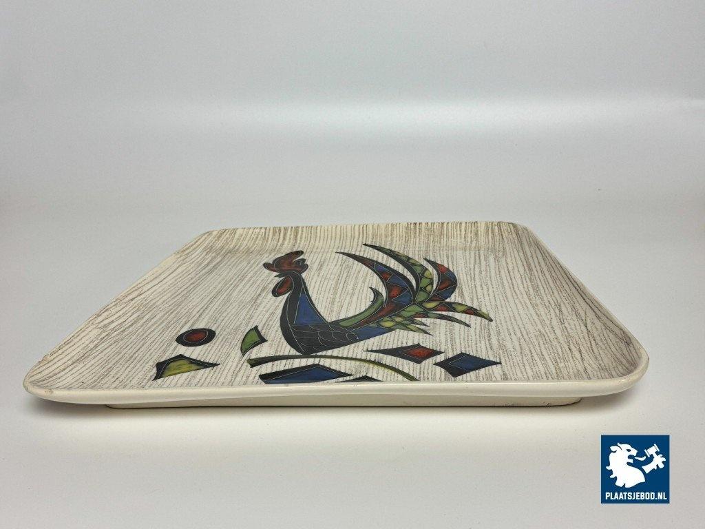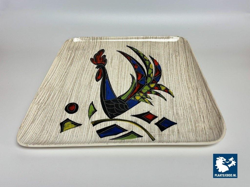 Kavel 311-035-DO-036: Vintage 1960s Portuguese Rooster Trapezoid Ceramid Wall/Serving Plate. Portugal 1960s.