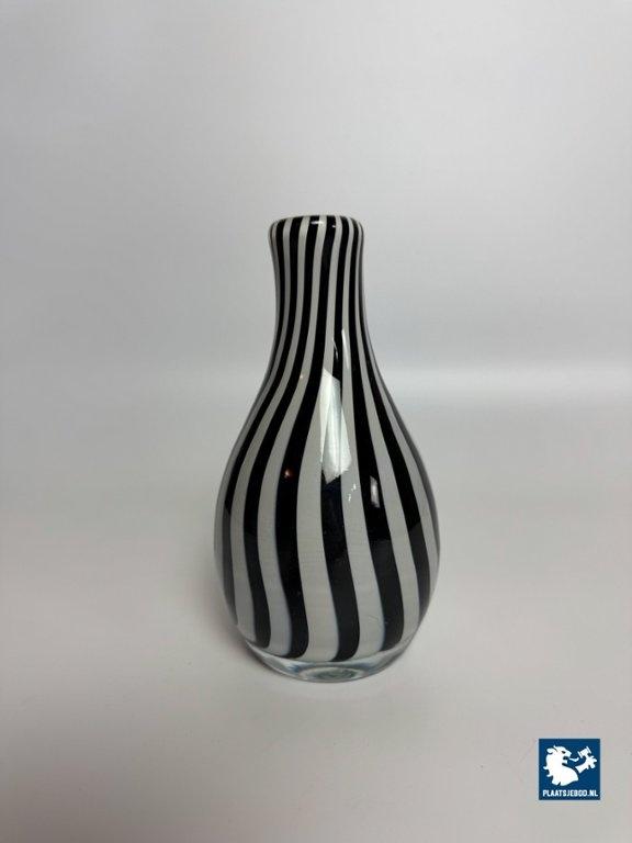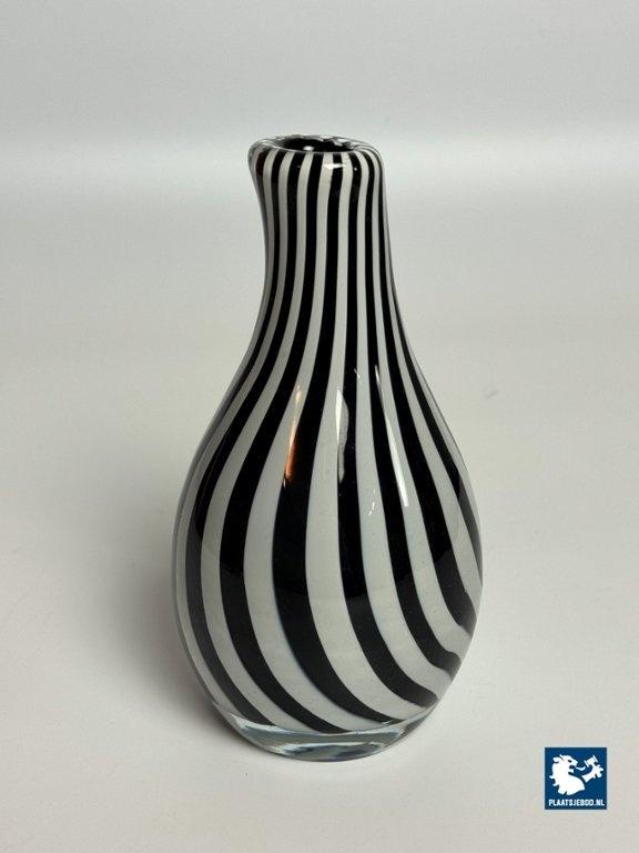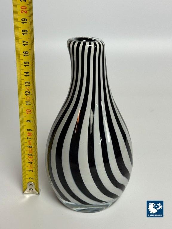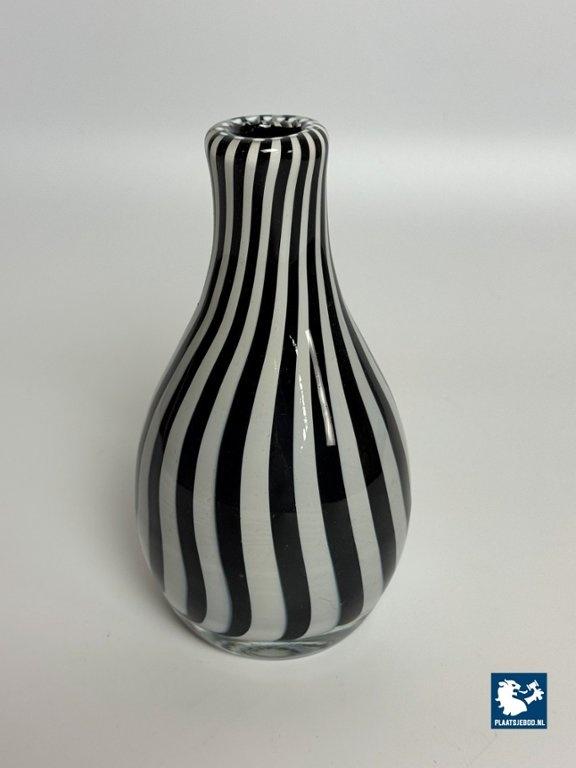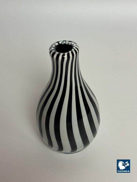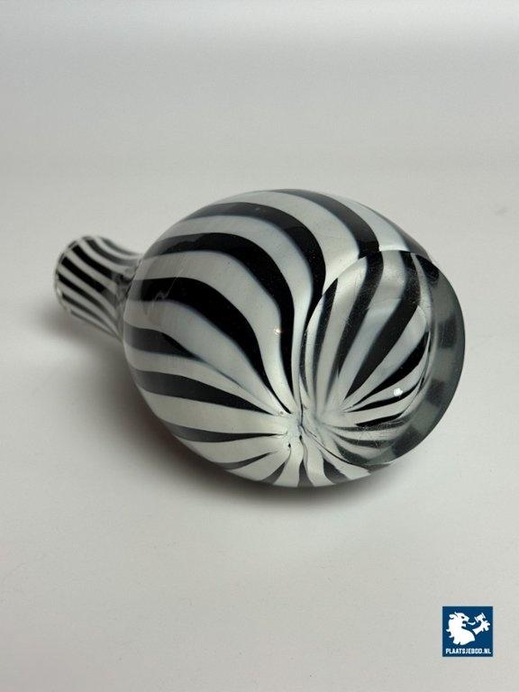 Kavel 311-046-V042: Vintage Black and White Murano Glass Bud Vase with Striped Pattern, Italy, 1970s