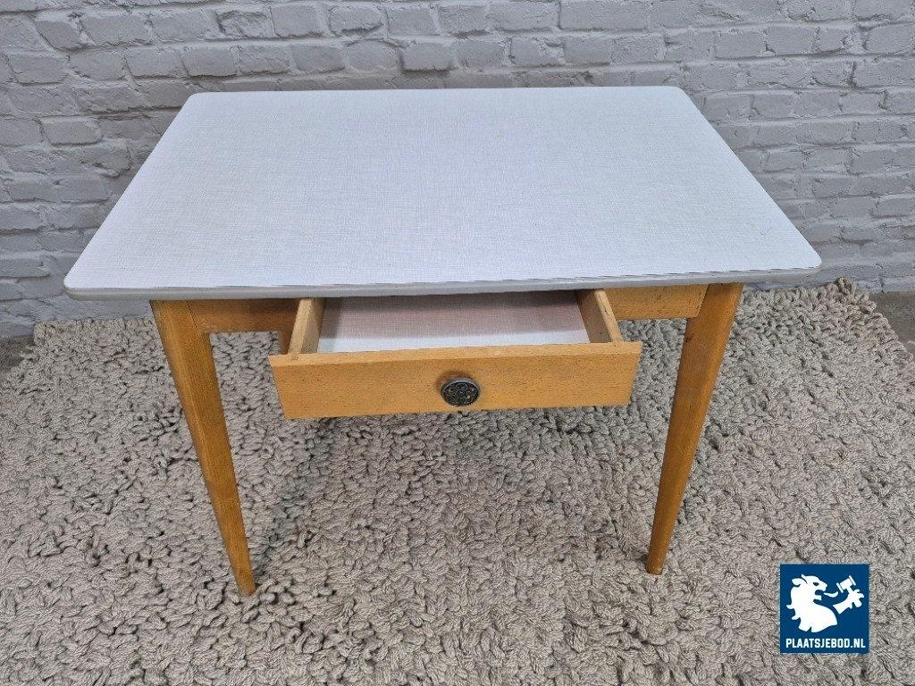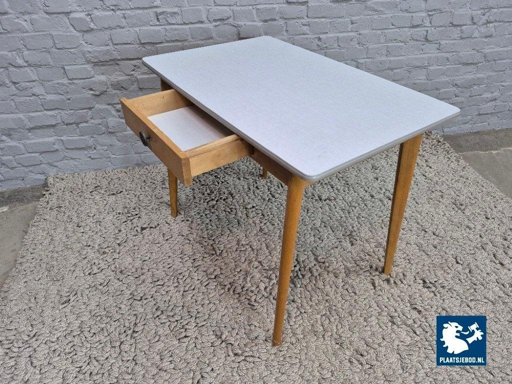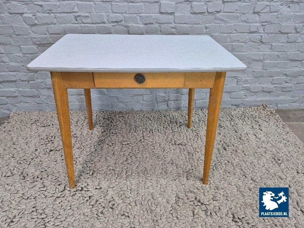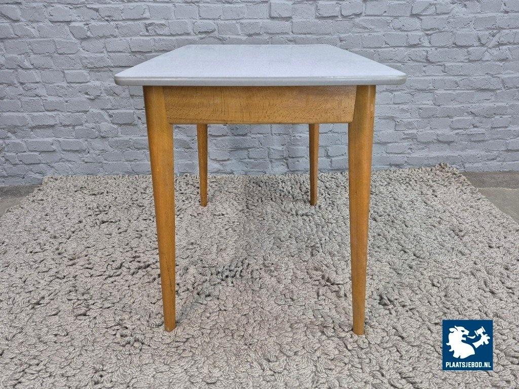 Kavel 311-006-1009: Vintage Design Wooden Kitchen Table with Drawer and Grey Formica Top – The Netherlands, 1950s