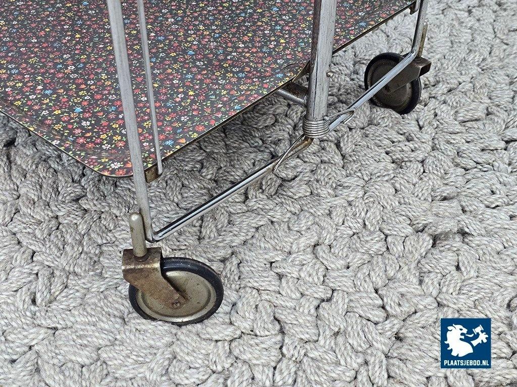 Vintage Foldable and Mobile Chrome Steel 2 Floral Decorated Layers ‘Dinett’ Serving Trolley by Gerlinol, Germany, 1970s. Special edition of the well-known ‘Dinett’ serving trolley, distinguished by its refined floral decorated trays. The chrome tubular steel frame and foldable construction remain identical to the standard model, while the decorative surfaces add a more expressive and rare character. The trolley can be fully folded to approximately 10 cm depth or used half-open as a sideboard, making it an excellent space-saving solution. A versatile and collectible vintage trolley, presented in well-preserved vintage condition, with light wear consistent with age and use. Dimensions: Height 78 Width 67 Depth 41,5 cm.